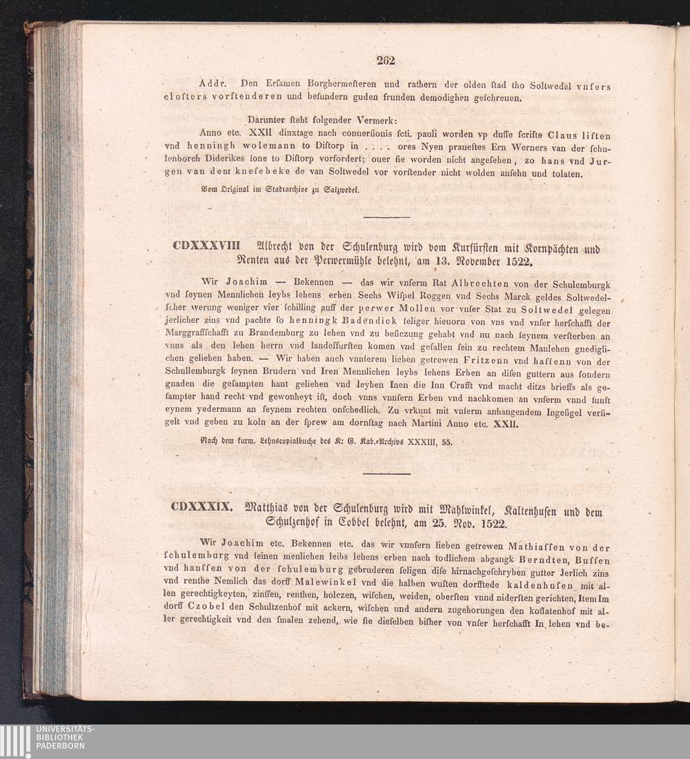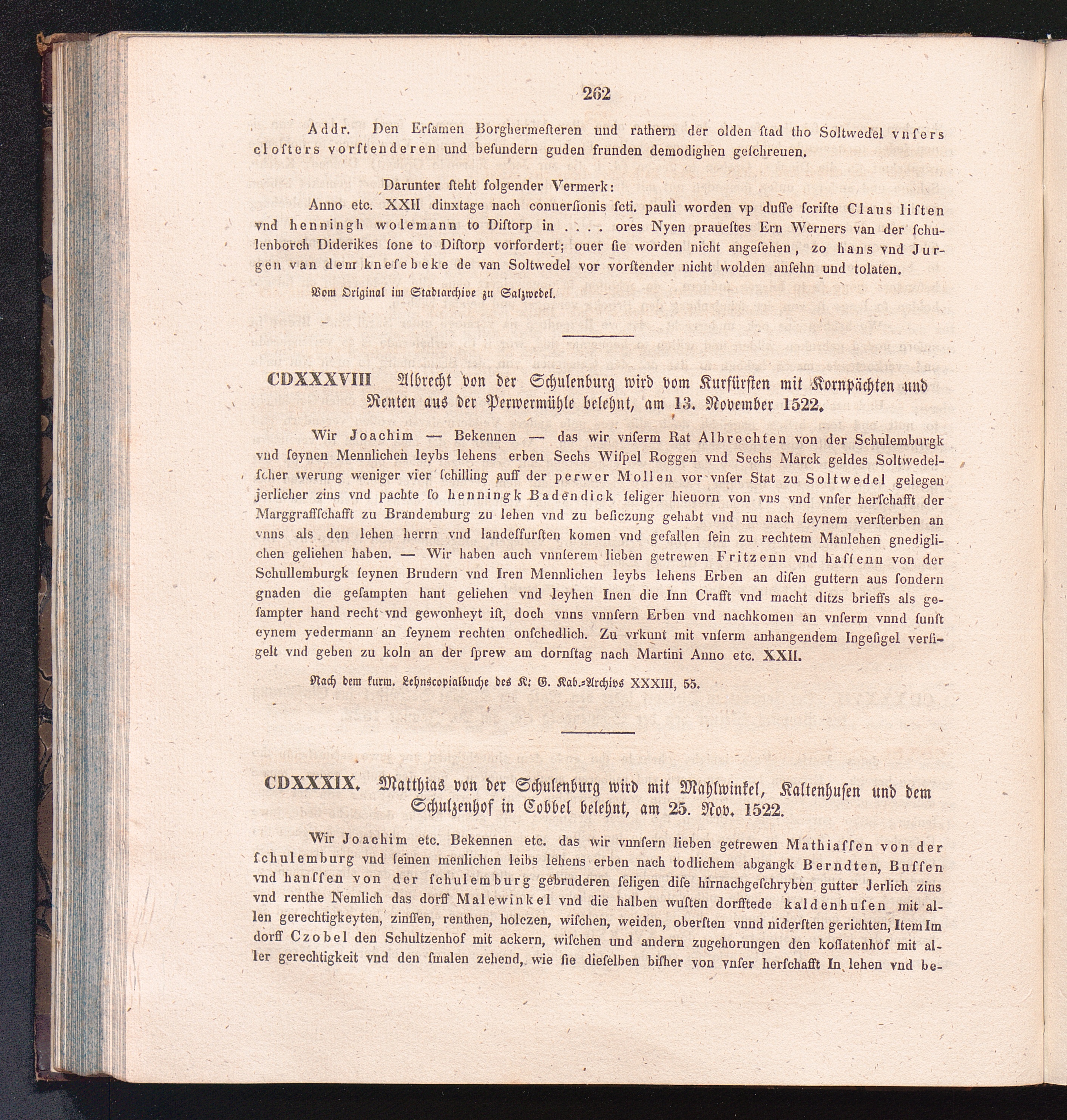 CDXXXIX. Matthias von der Schulenburg wird mit Mahlwinkel, Kaltenhufen und dem Schulzenhof[...]