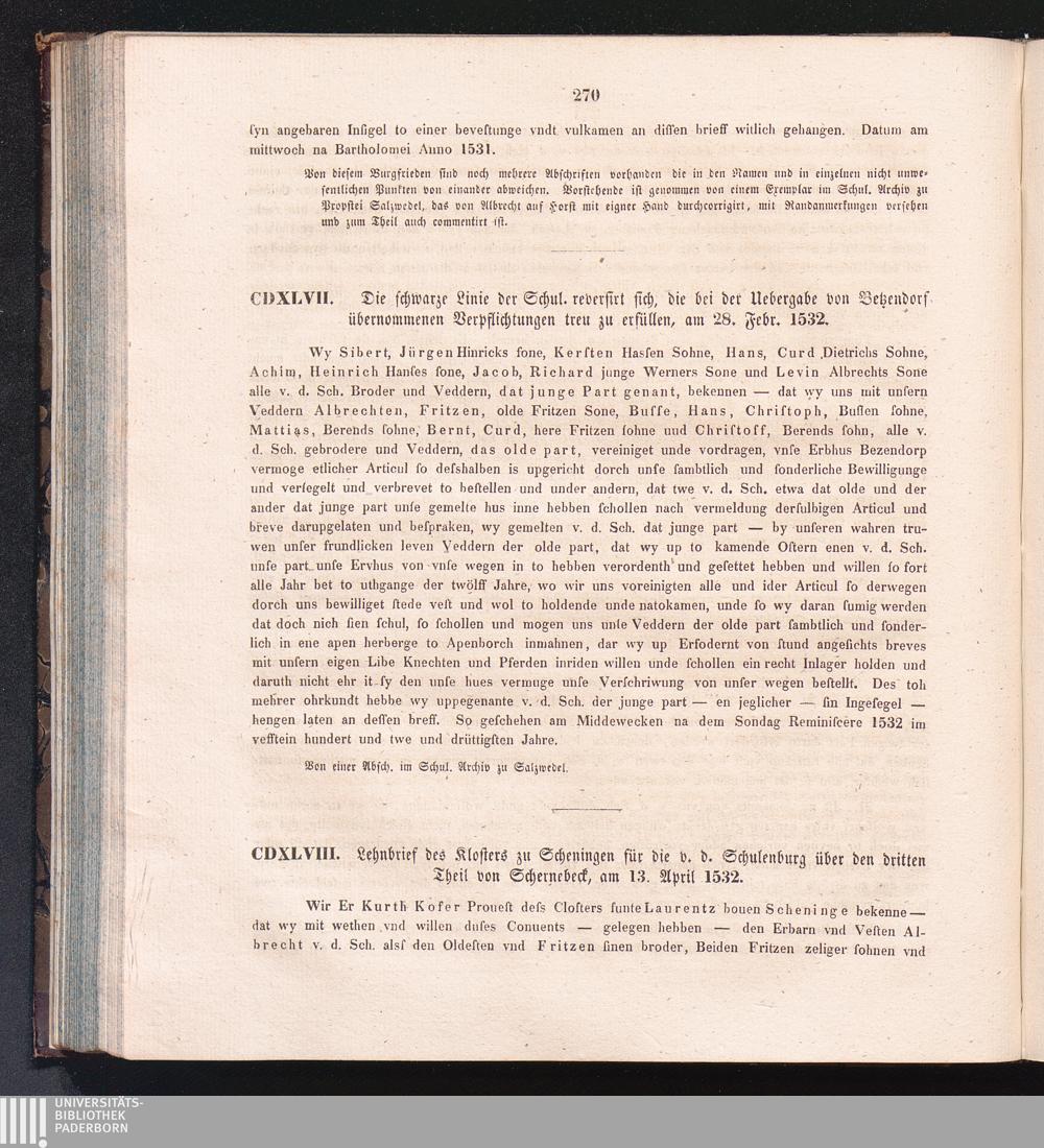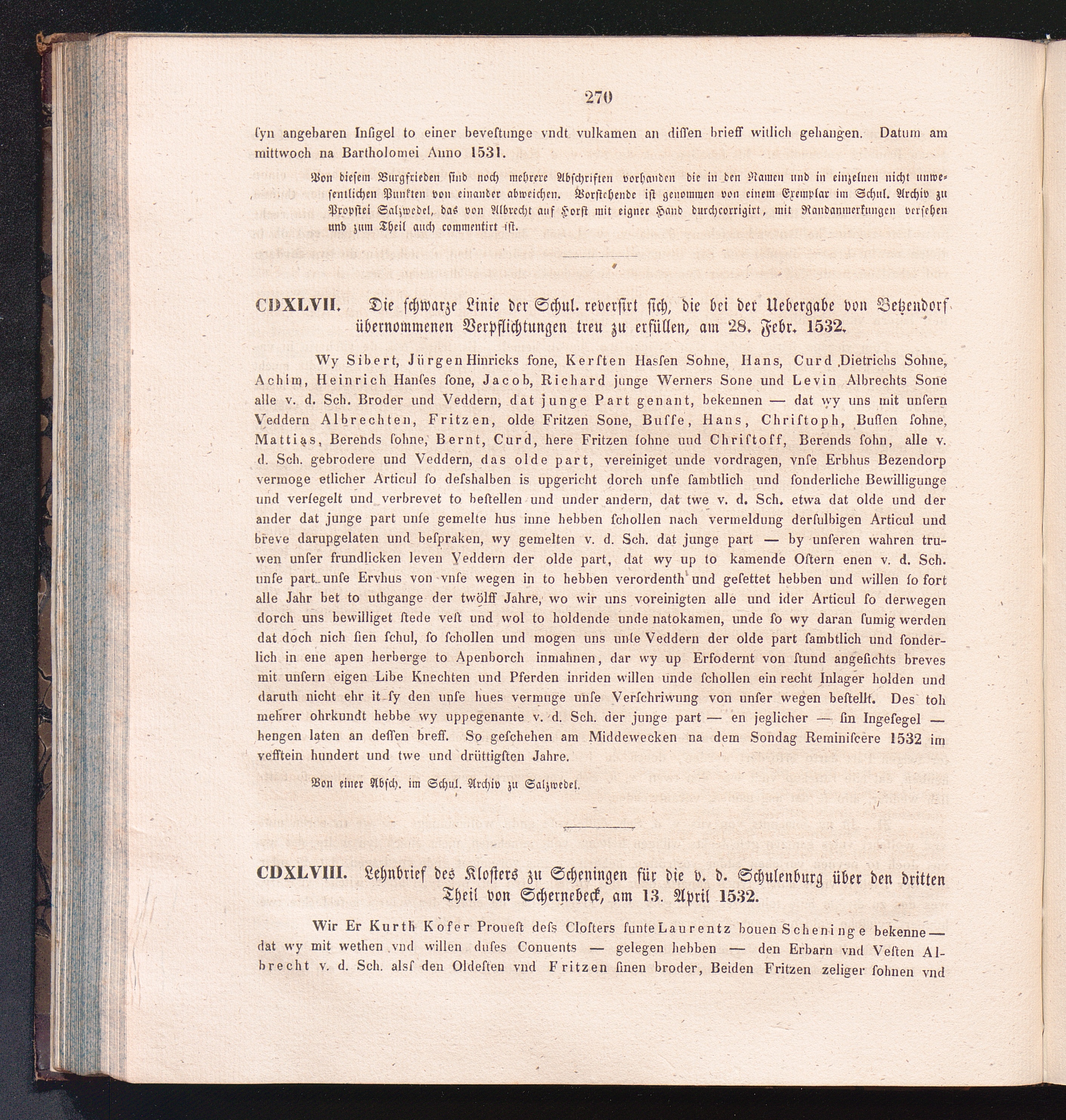 CDXLVIII. Lehnbrief des Klosters zu Scheningen für die v. d. Schulenburg über den[...]