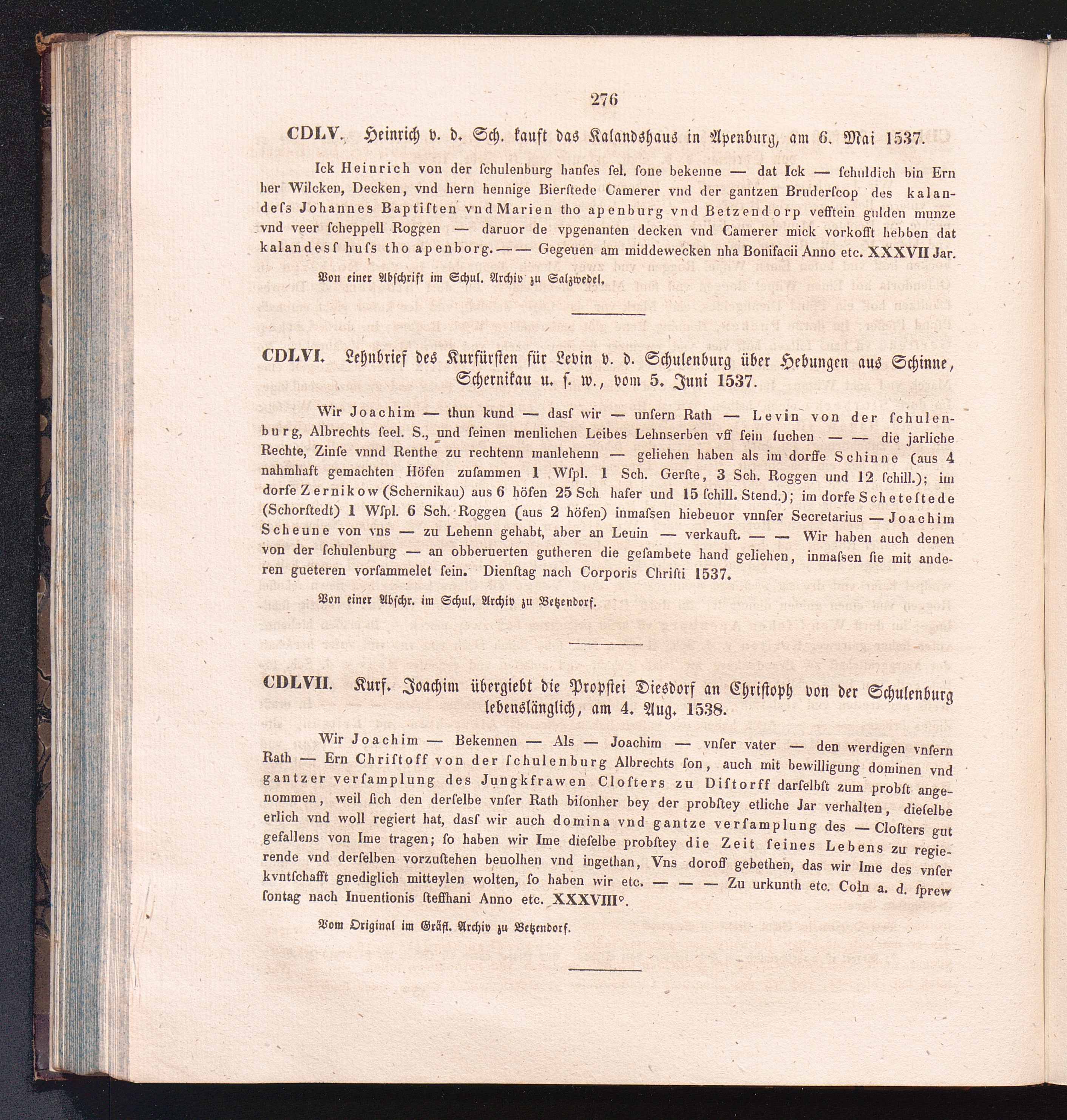 CDLVII. Kurf. Joachim übergiebt die Propstei Diesdorf an Christoph von der Schulenburg[...]