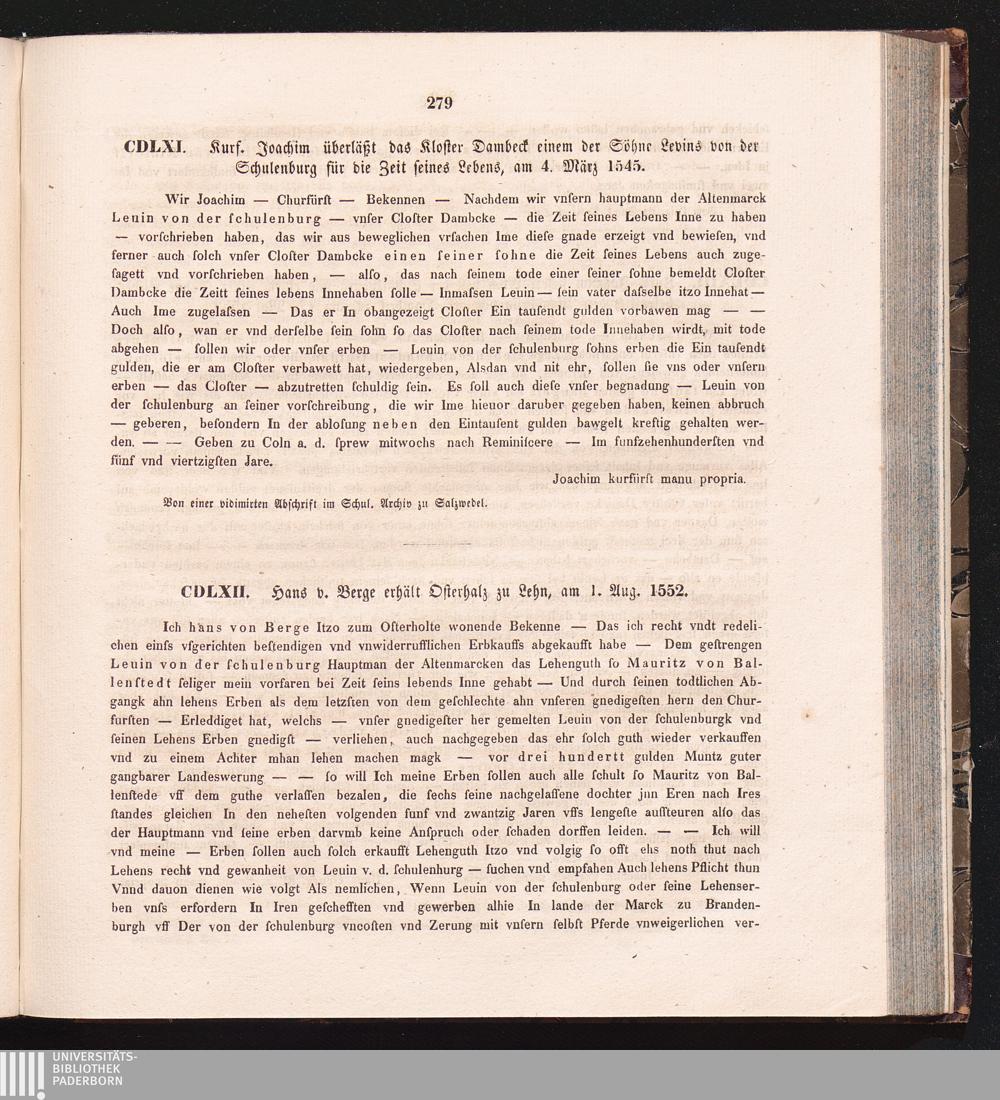 CDLXII. Hans v. Berge erhält Osterhalz zu Lehn, am 1. Aug. 1552.