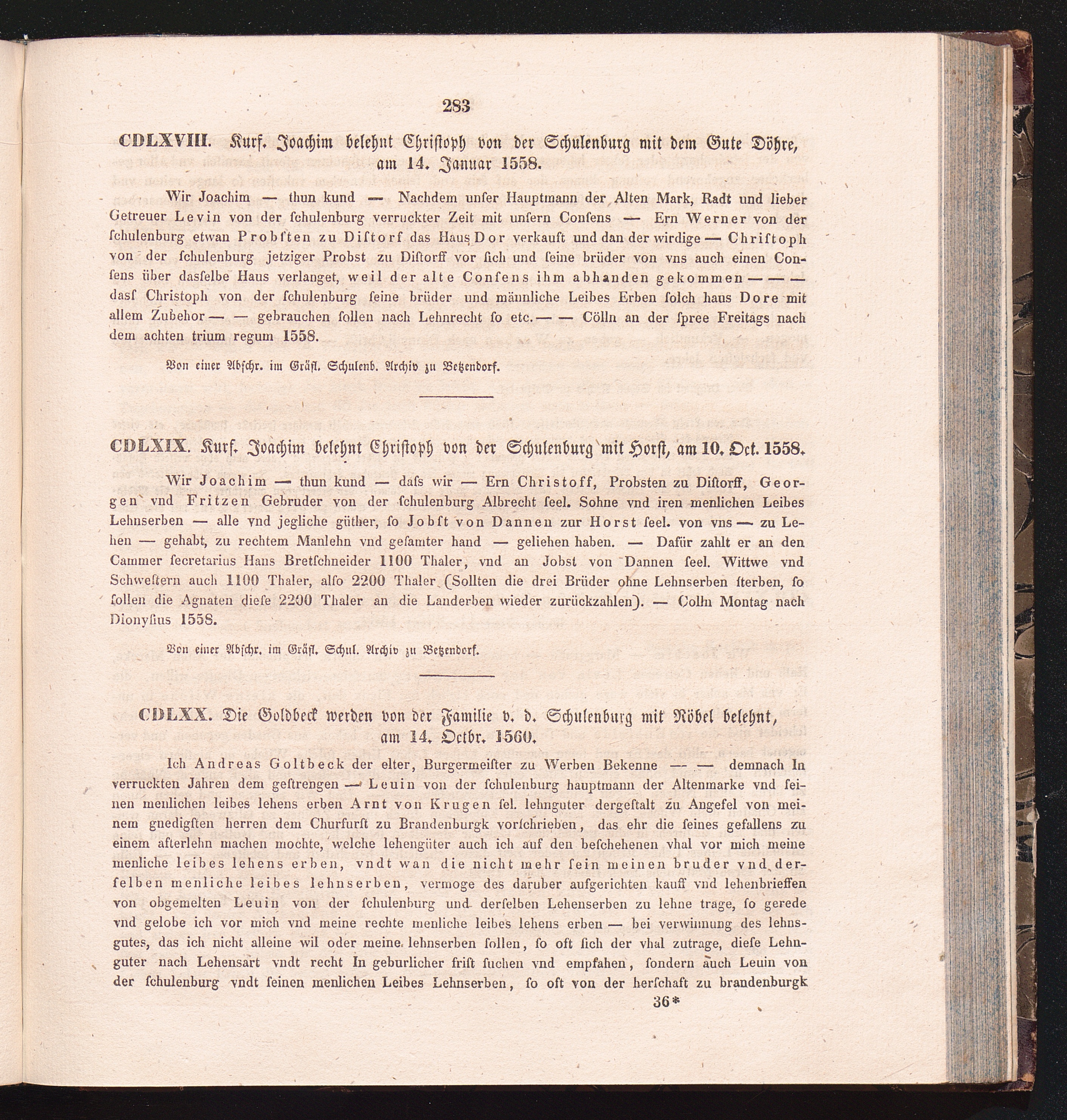 CDLXX. Die Goldbeck werden von der Familie v. d. Schulenburg mit Röbel belehnt, am[...]