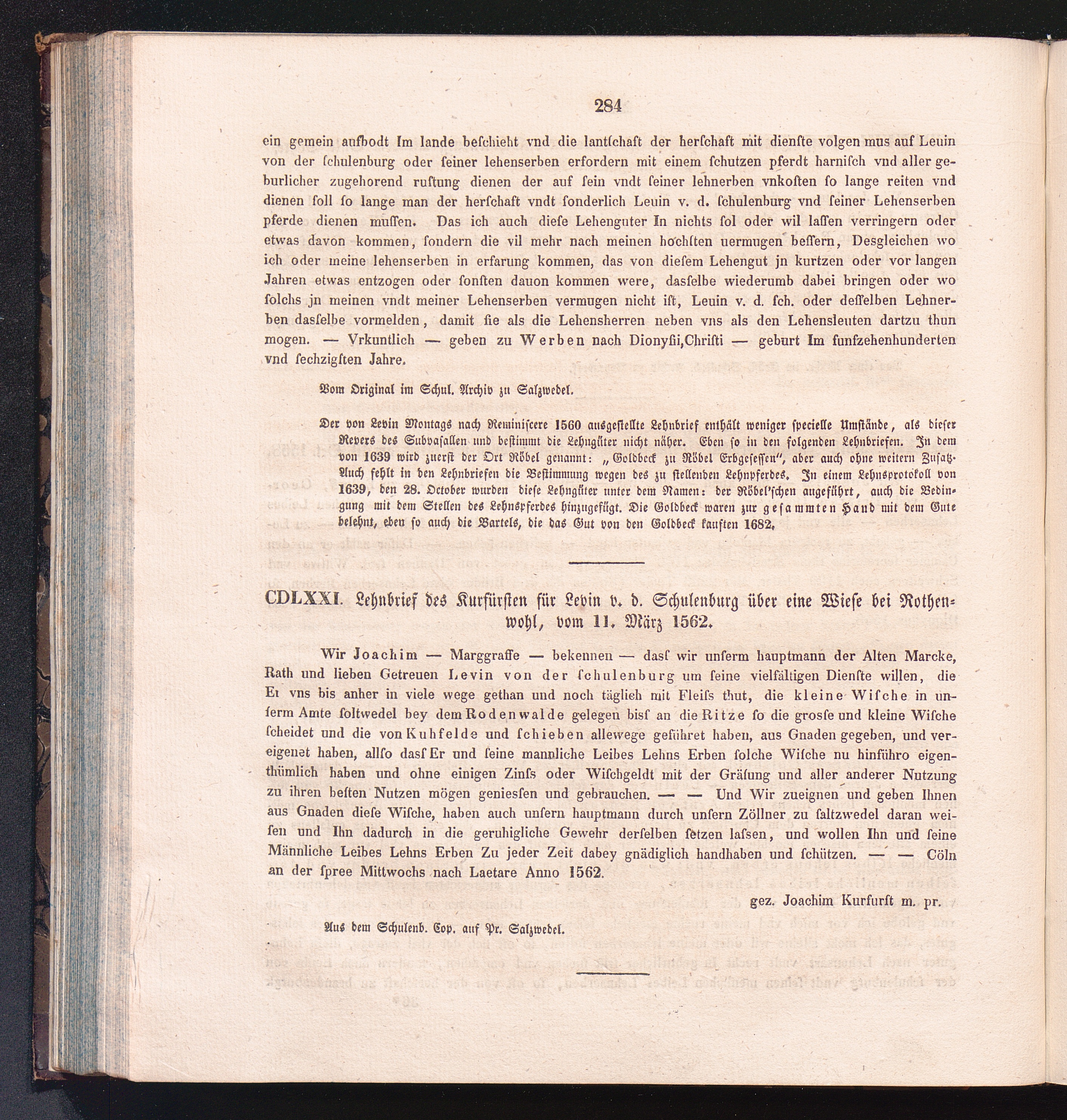 CDLXXI. Lehnbrief des Kurfürsten für Levin v. d. Schulenburg über eine Wiese bei[...]