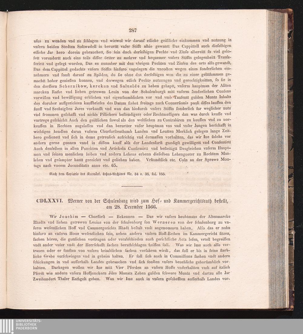 CDLXXVI. Werner von der Schulenburg wird zum Hof- und Kammergerichtsrath bestellt,[...]