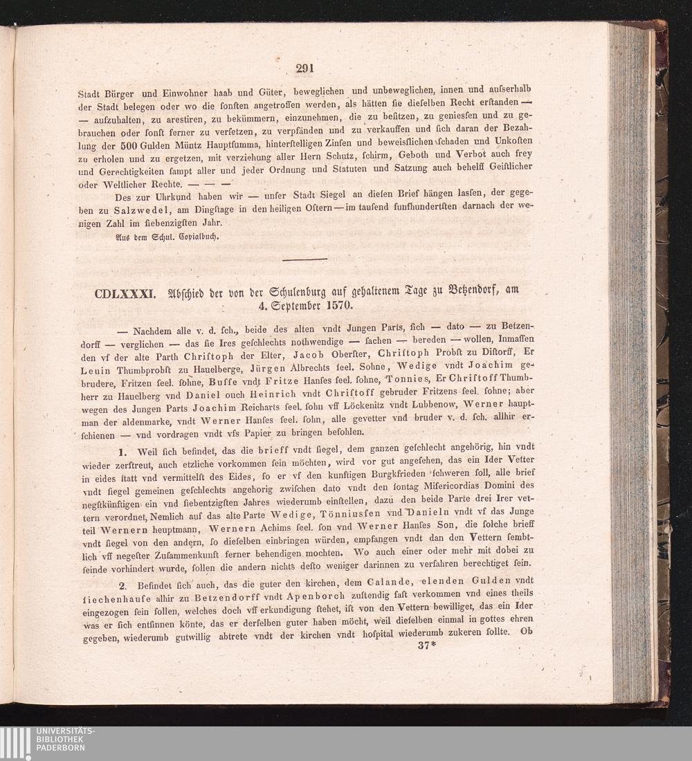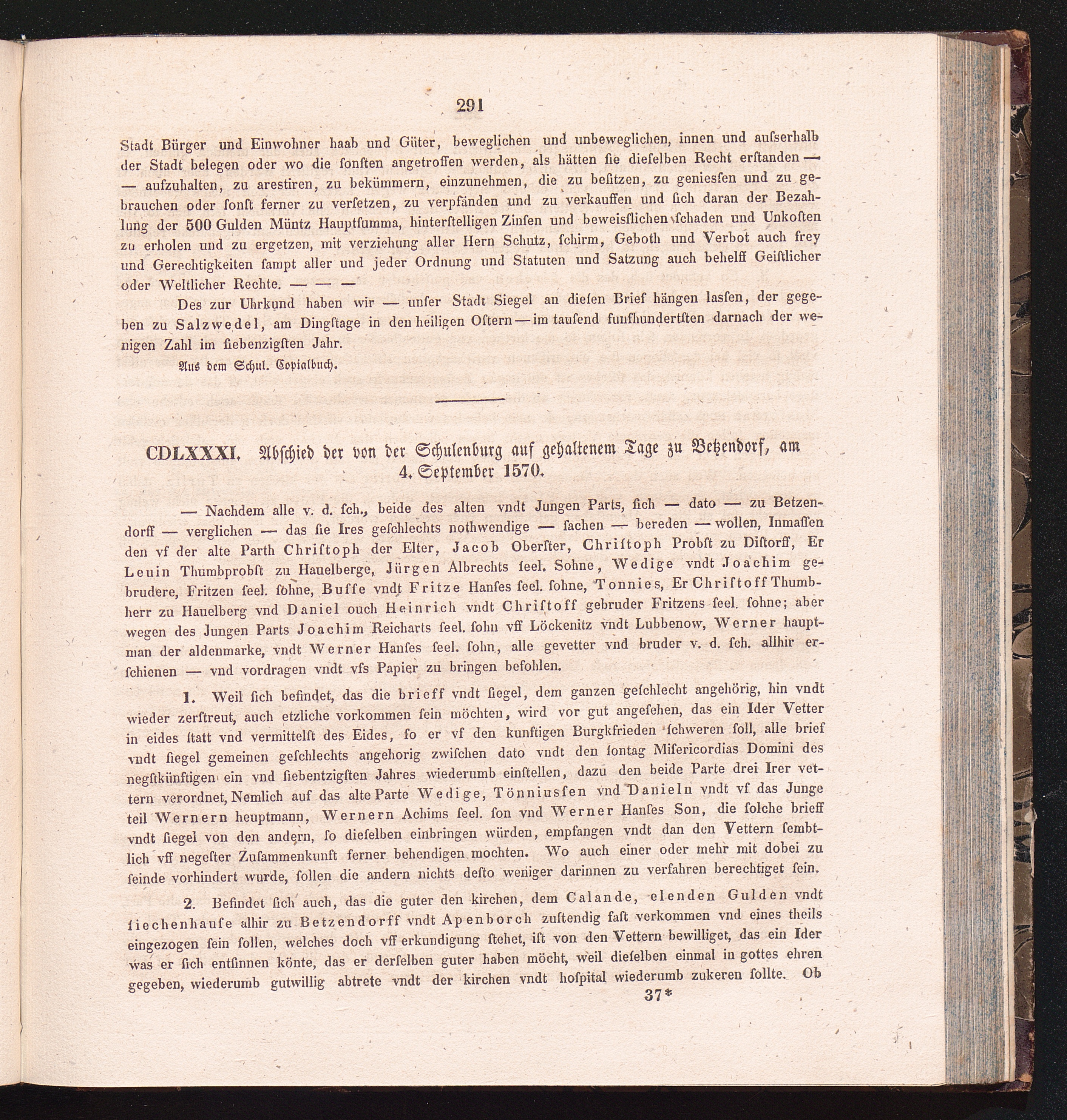 CDLXXXI. Anschied der von der Schulenburg auf gehaltenem Tage zu Betzendorf, am 4.[...]