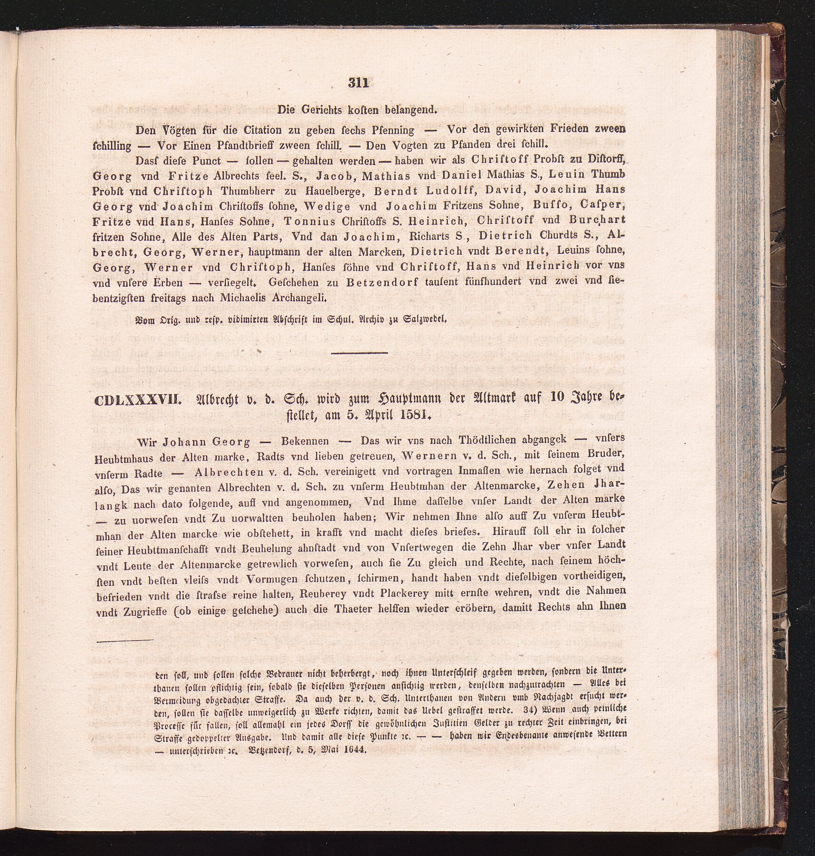CDLXXXVII. Albrecht v. d. Sch. wird zum Hauptmann der Altmark auf 10 Jahre bestellet,[...]