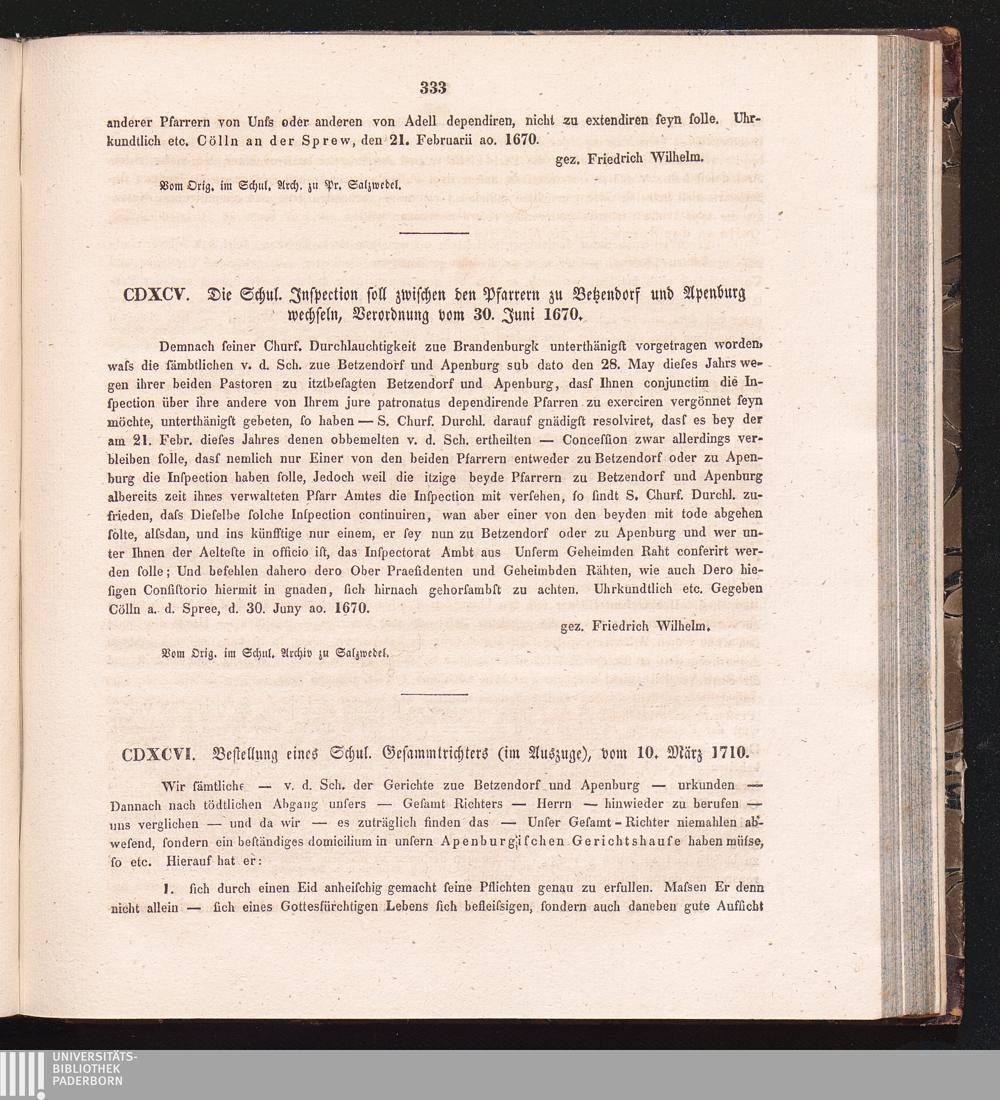 CDXCVI. Bestellung eines Schul. Gesammtrichters (im Auszuge), vom 10. März 1710.