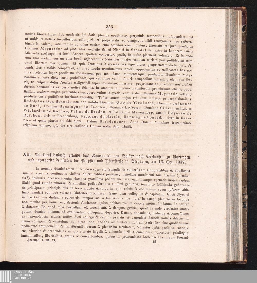 XII. Markgraf Ludwig erlaubt das Domcapitel von Boister nach Seehausen zu übertragen[...]