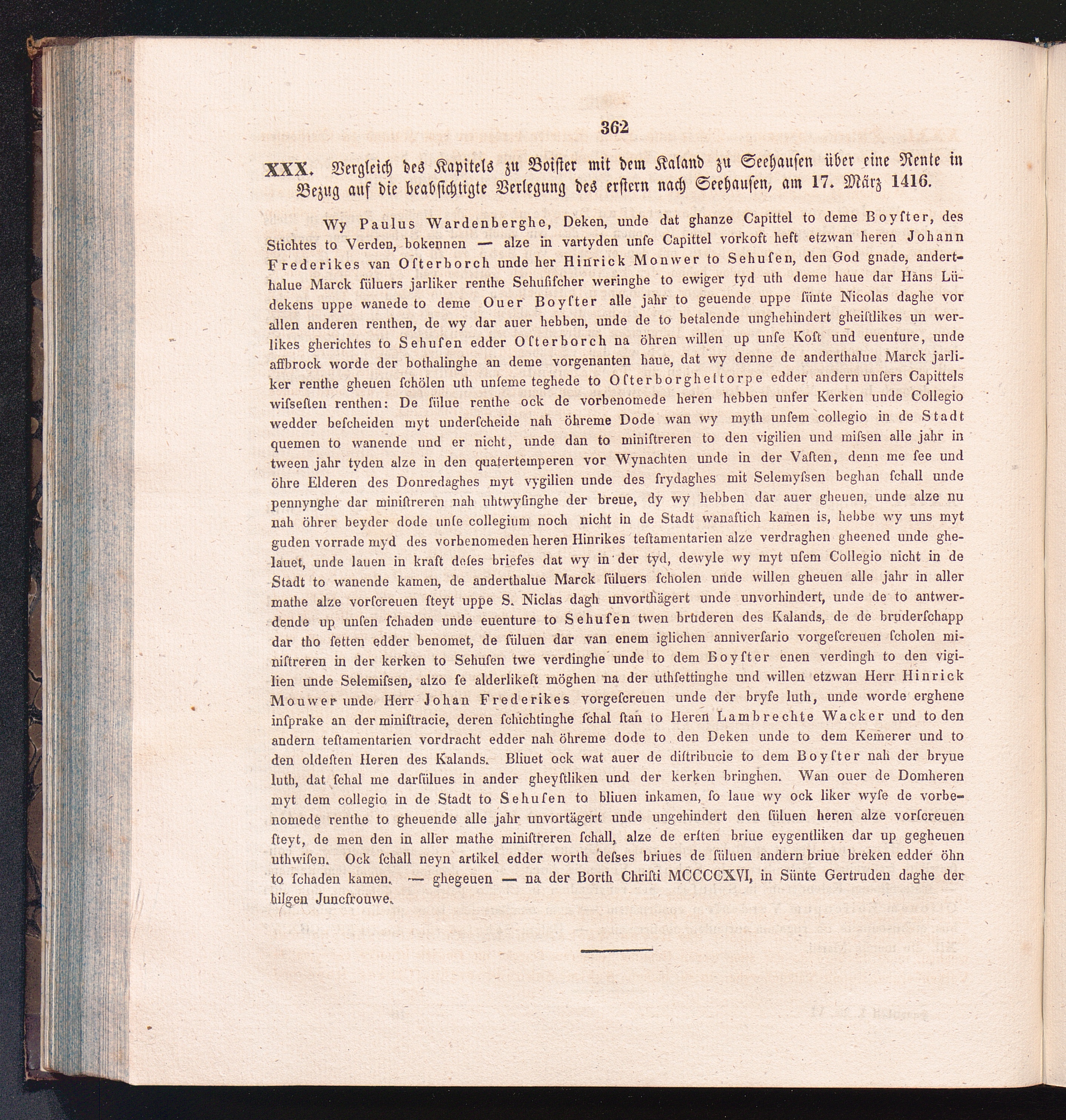 XXX. Vergleich des Kapitels zu Boister mit dem Kaland zu Seehausen über eine Rente[...]