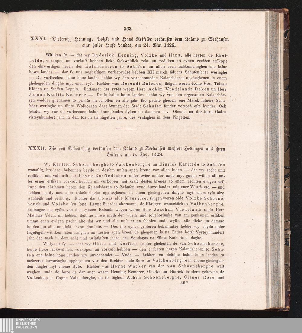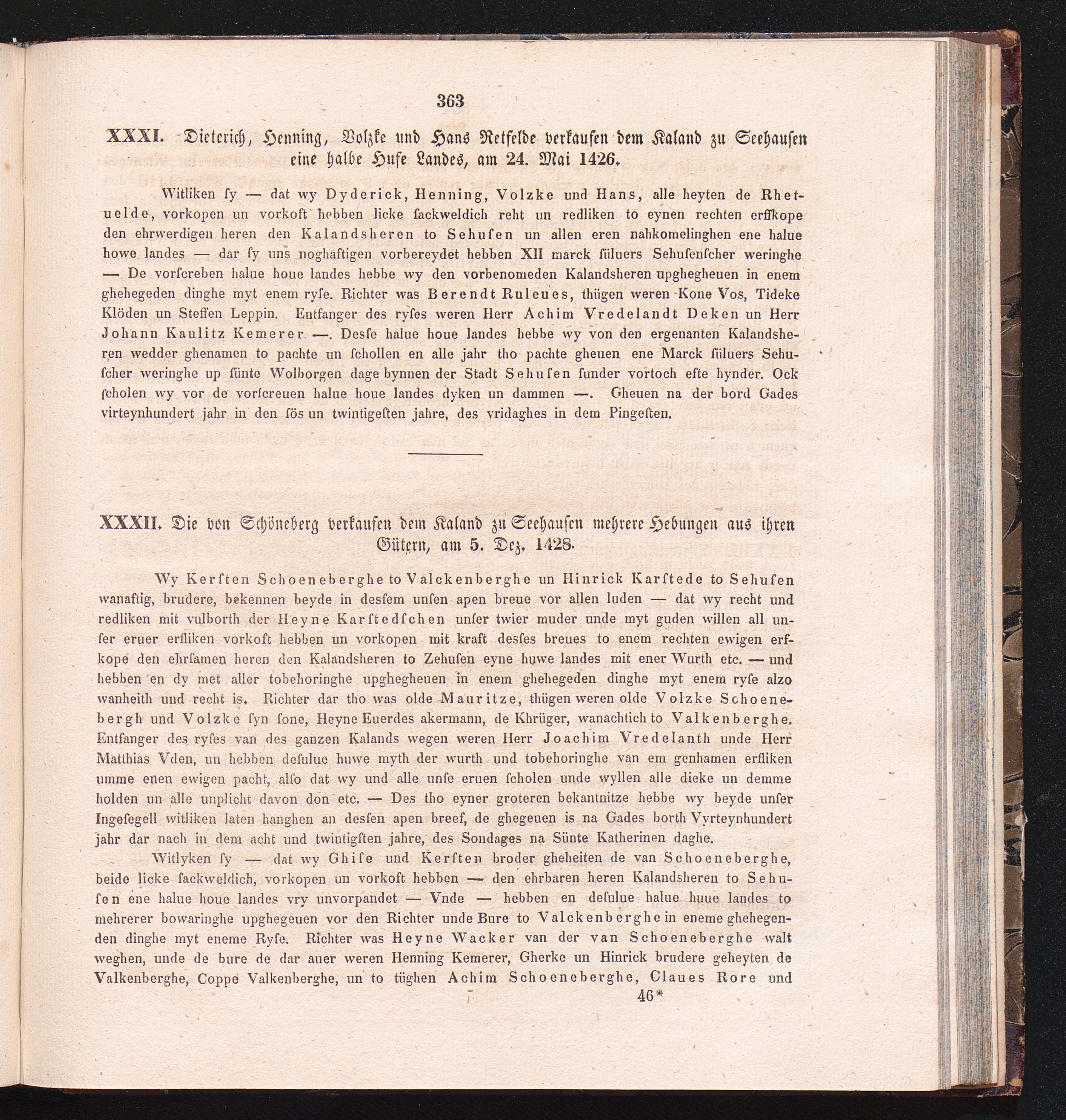 XXXII. Die von Schöneberg verkaufen dem Kaland zu Seehausen mehrere Hebungen aus[...]