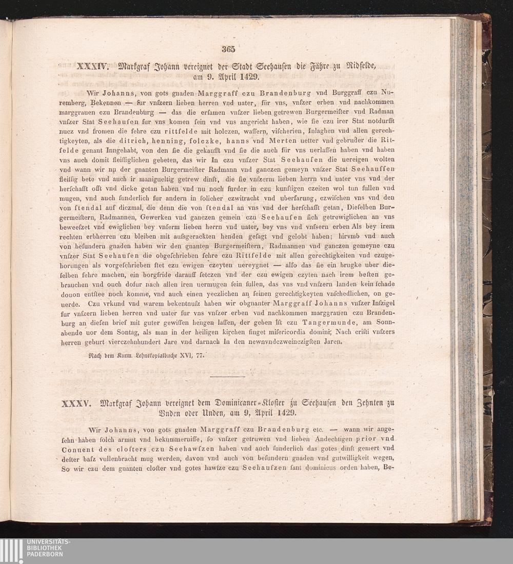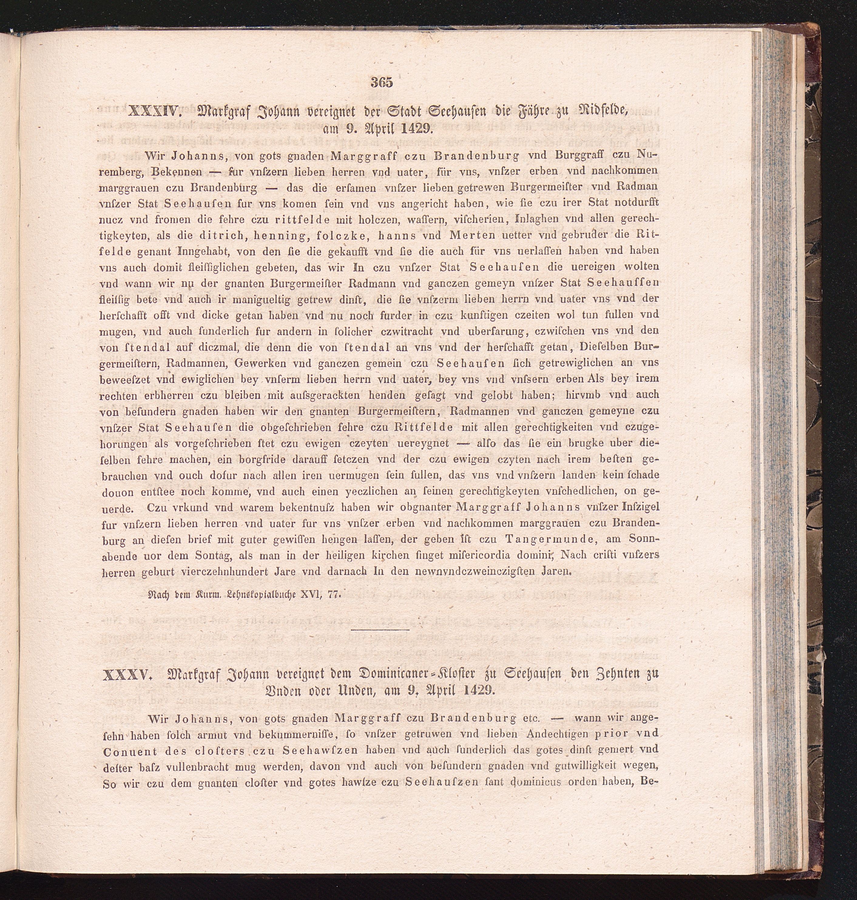 XXXV. Markgraf Johann vereignet dem Dominicaner-Kloster zu Seehausen den Zehnten[...]