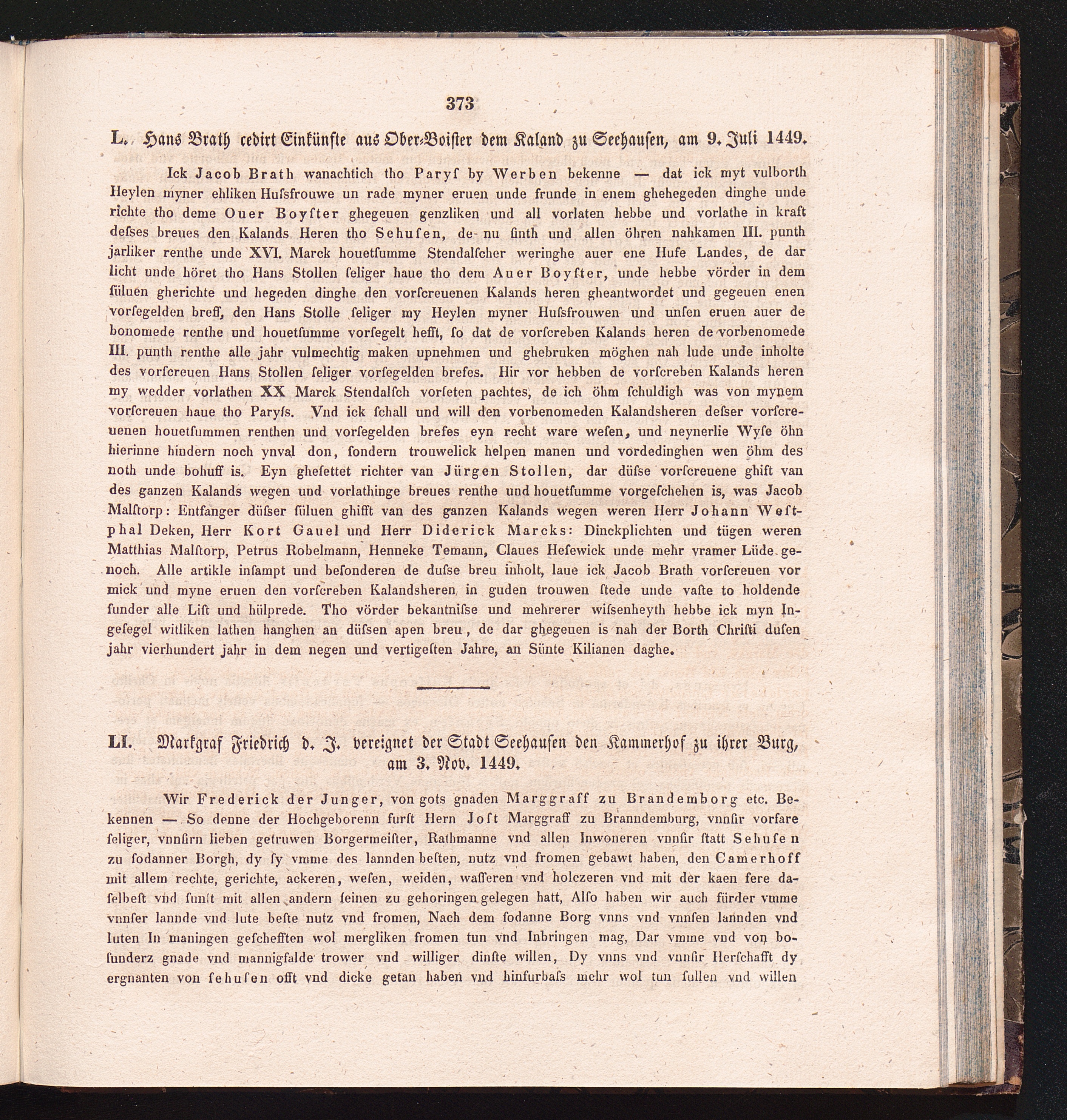 LI. Markgraf Friedrich d. J. vereignet der Stadt Seehausen den Kammerhof zu ihrer[...]
