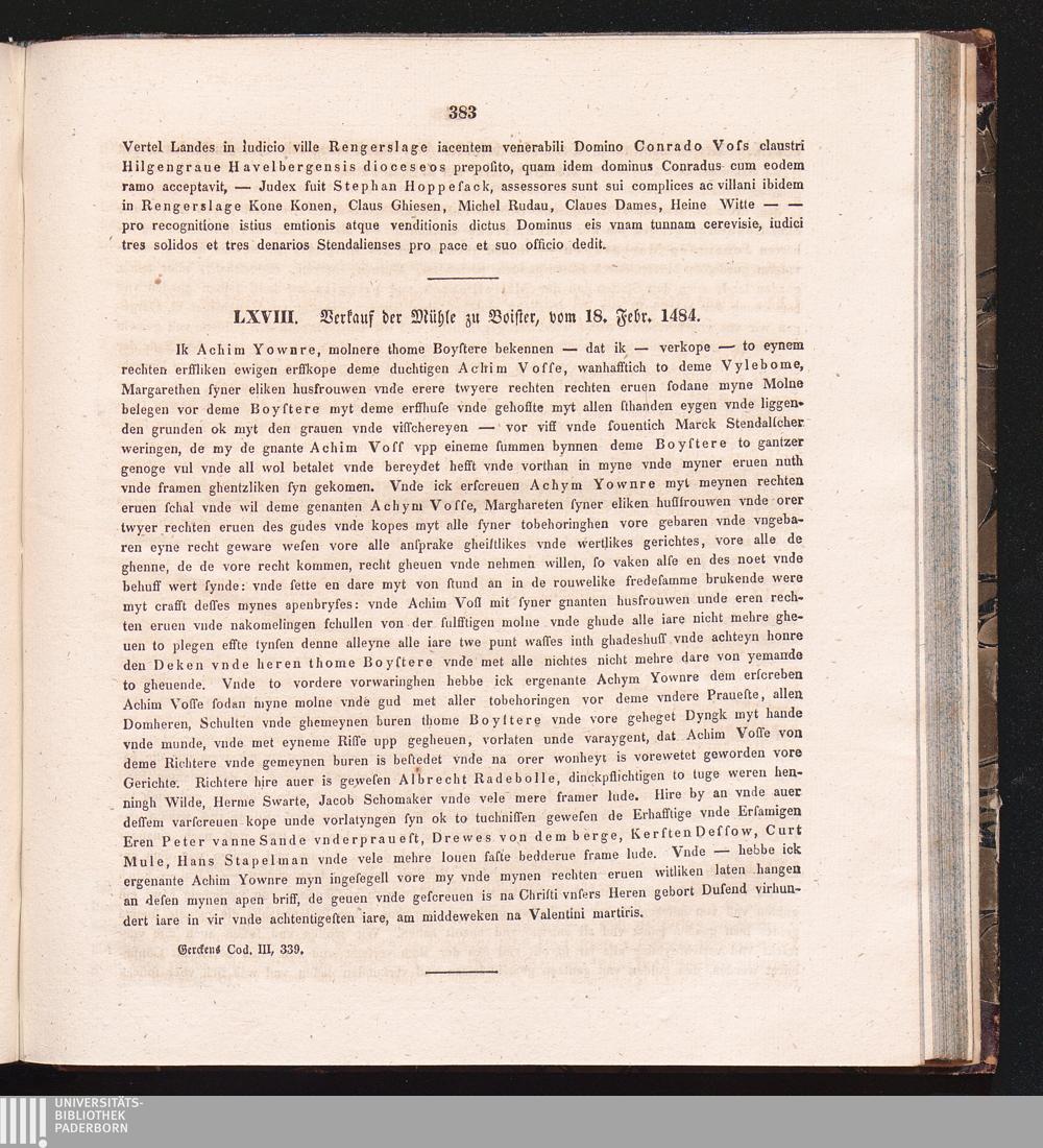 LXVIII. Verkauf der Mühle zu Boister, vom 18. Febr. 1484.