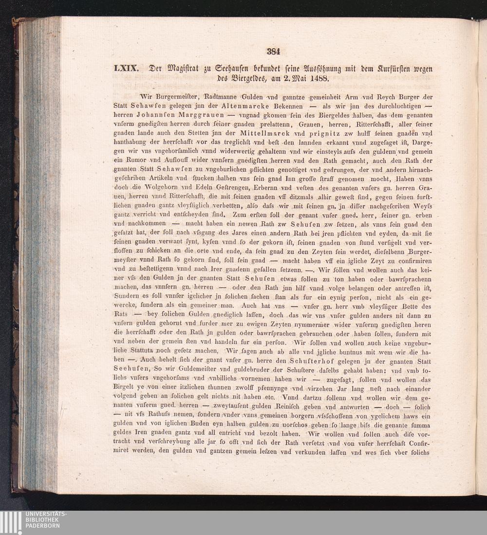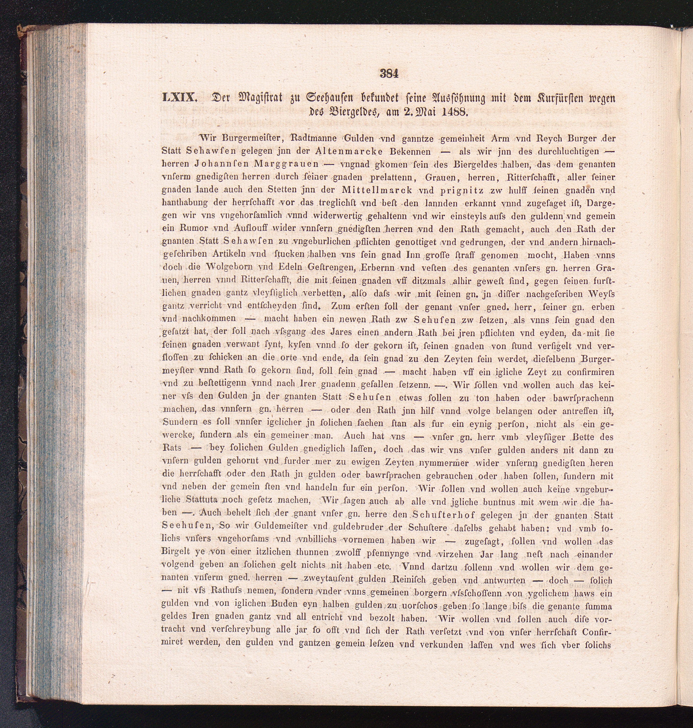 LXIX. Der Magistrat zu Seehausen bekundet seine Aussöhnung mit dem Kurfürsten wegen[...]