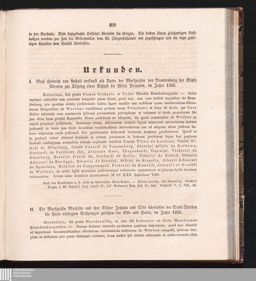 II. Die Markgräfin Mathilde und ihre Söhne Johann und Otto überlassen der Stadt Werben[...]