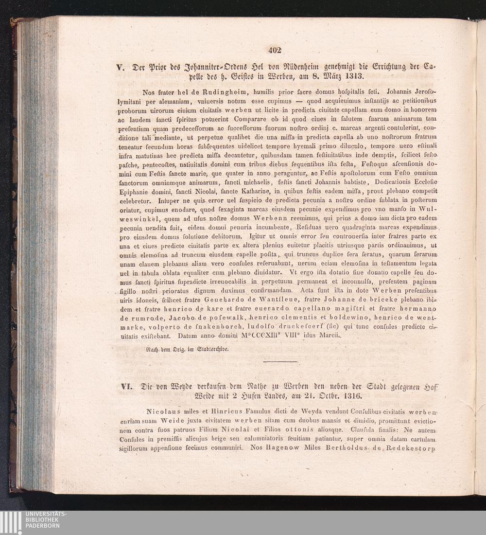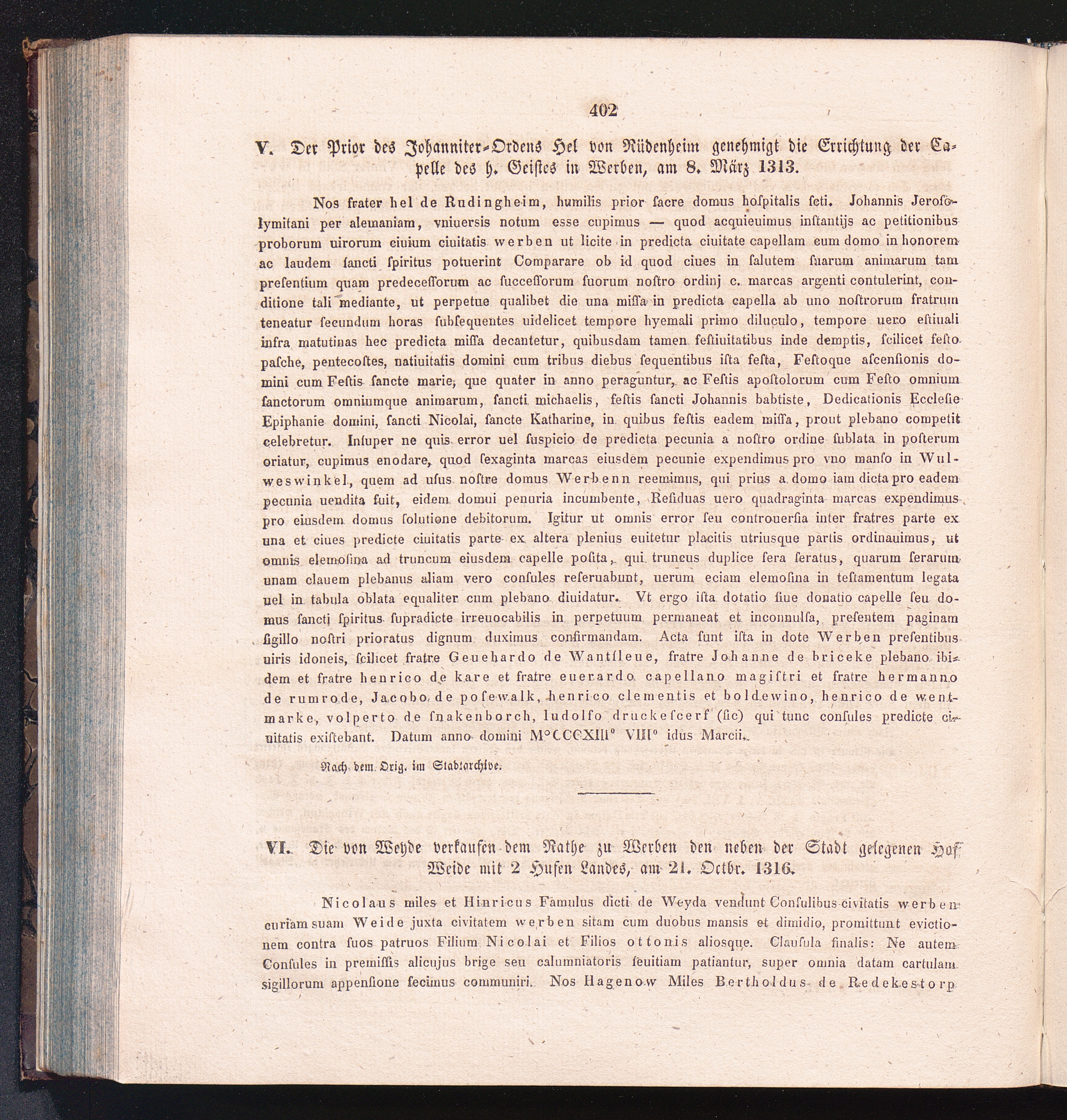 VI. Die von Weyde verkaufen dem Rathe zu Werben den neben der Stadt gelegenen Hof[...]