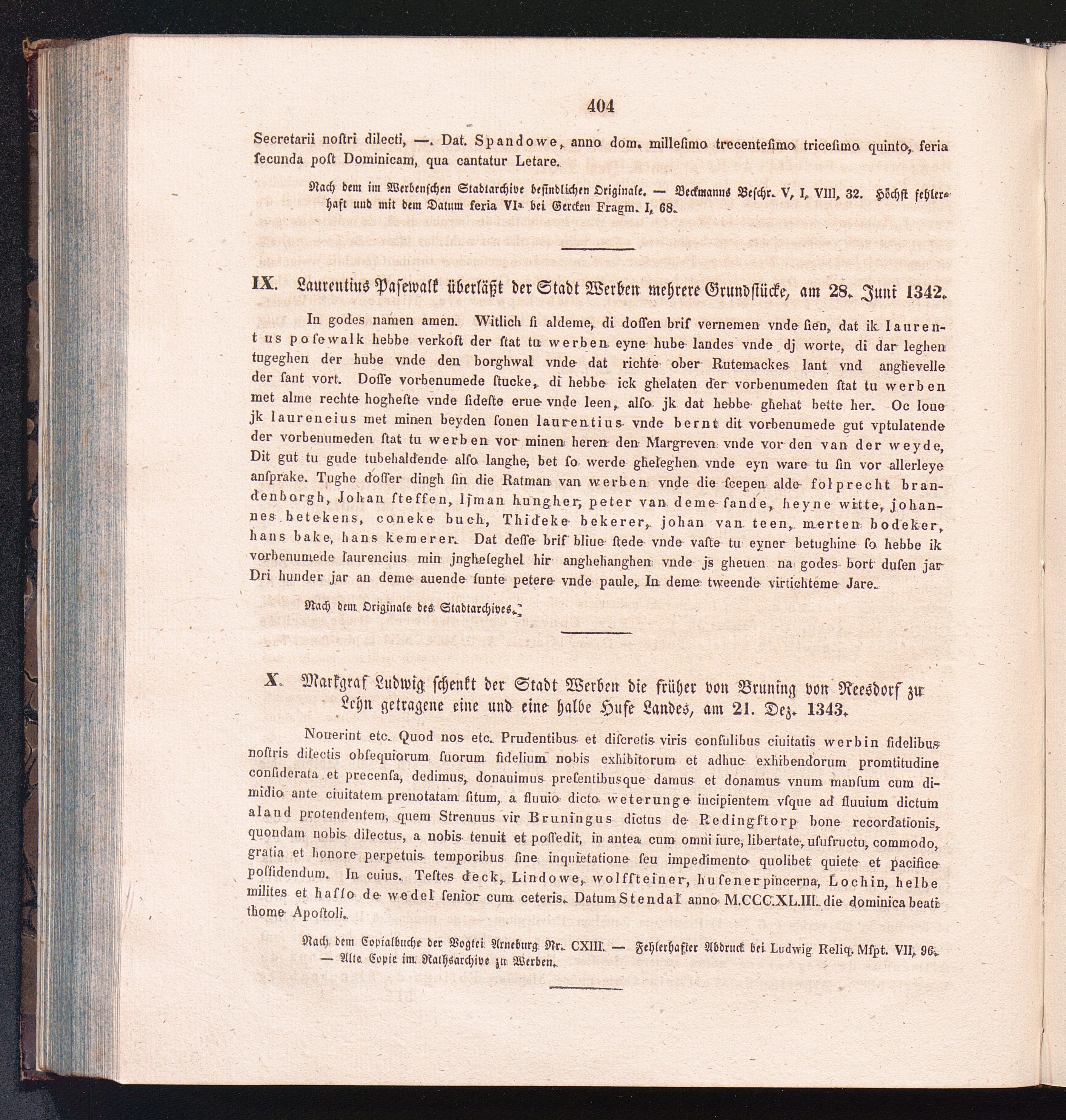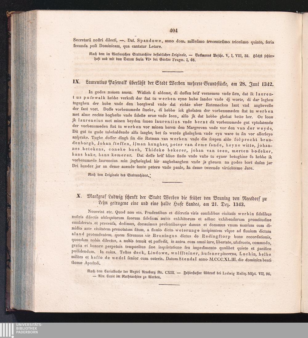 X. Markgraf Ludwig schenkt der Stadt Werben die früher von Bruning von Reesdorf zur[...]