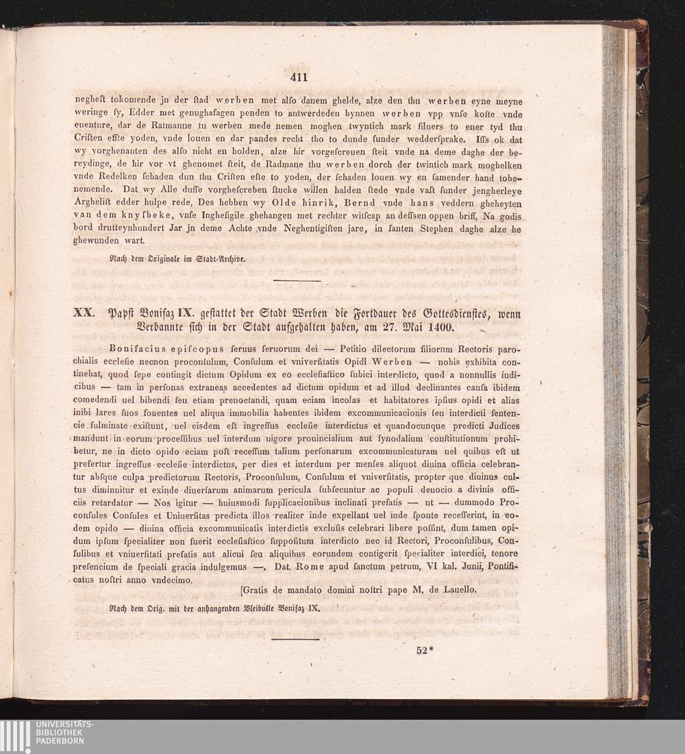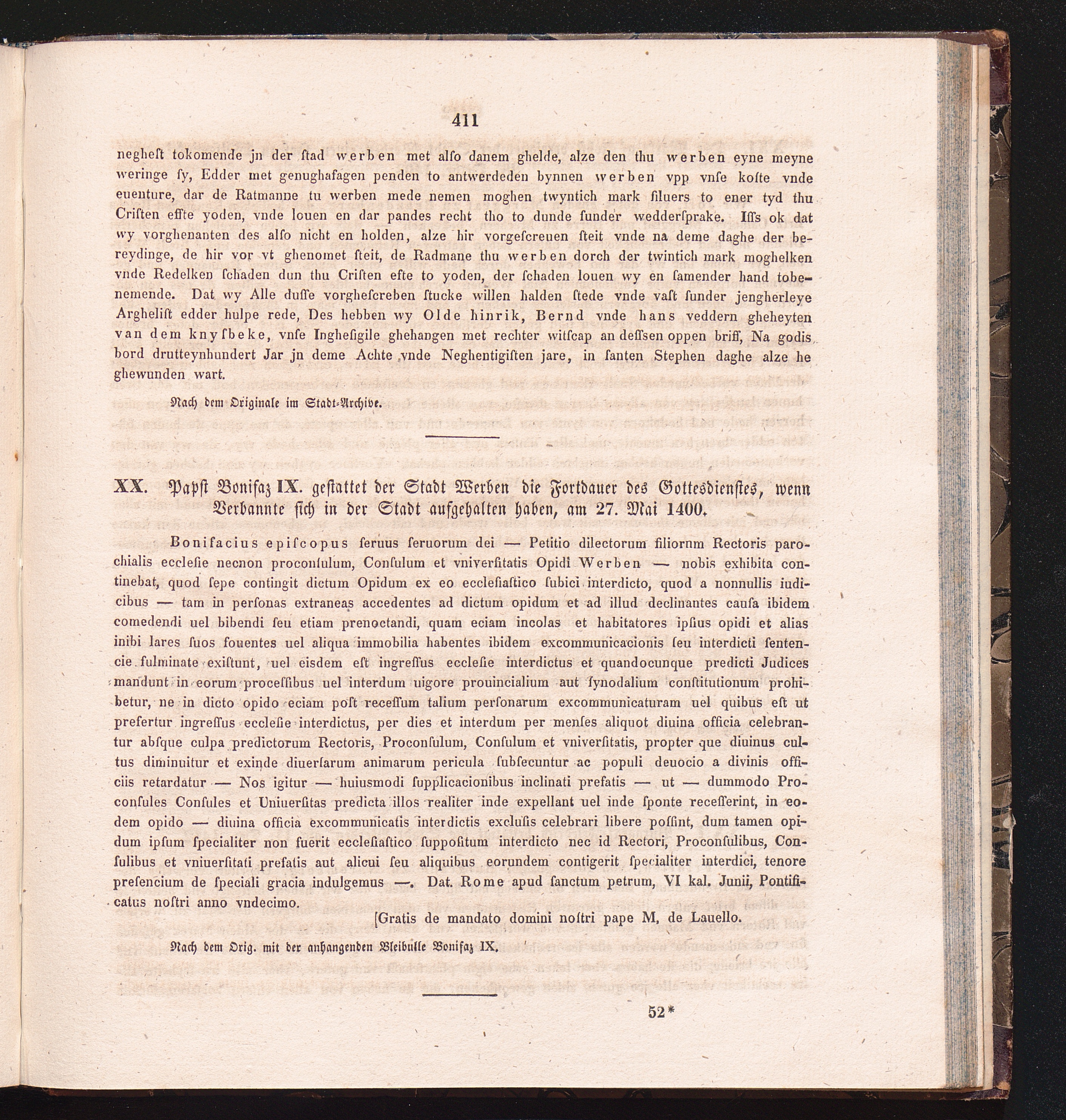 XX. Papst Bonifaz IX. gestattet der Stadt Werben die Fortdauer des Gottesdienstes,[...]