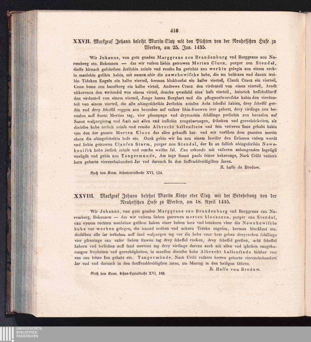 XXVIII. Markgraf Johann belehnt Martin Klotze oder Clutz mit der Bedehebung von der[...]