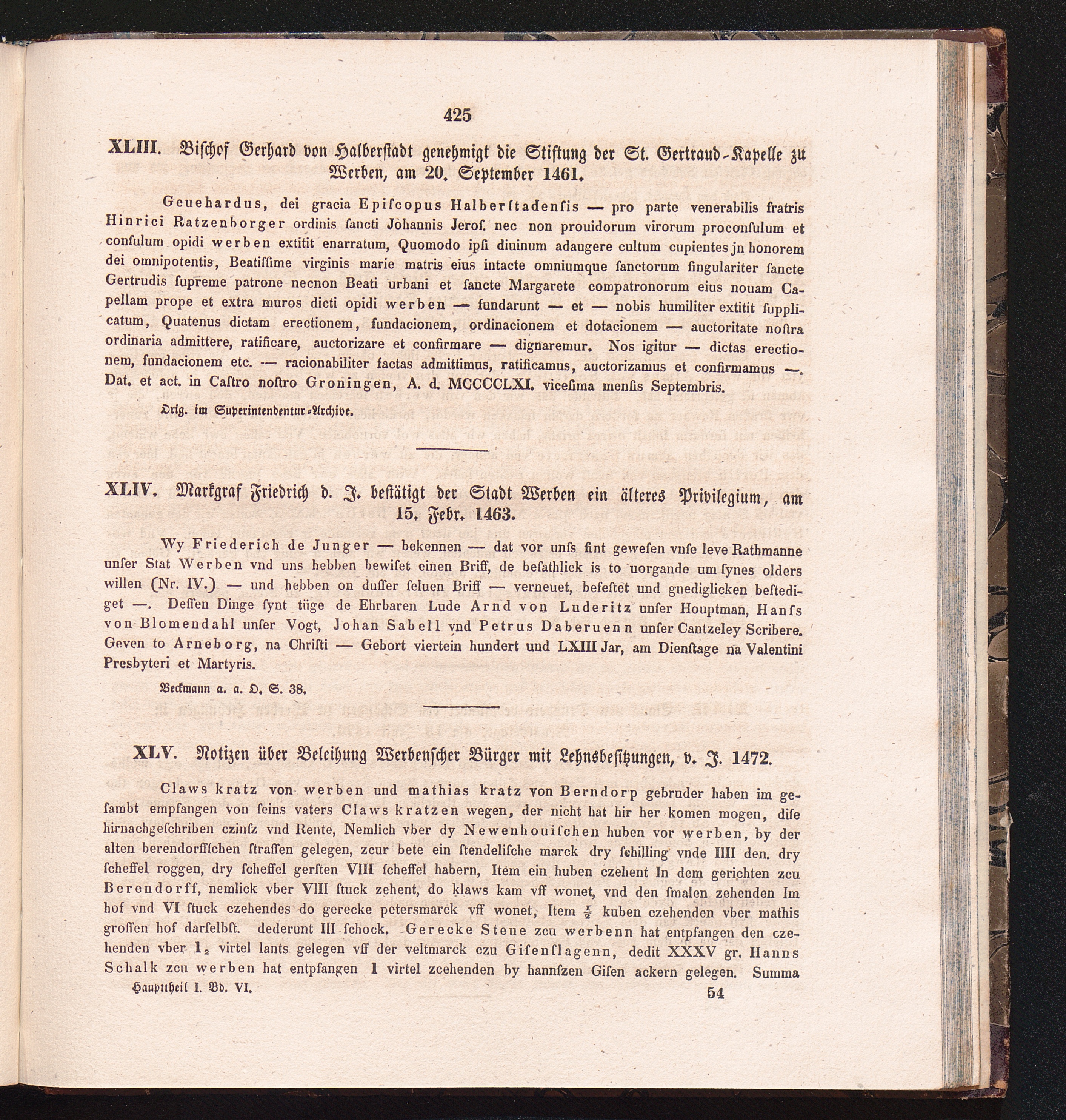 XLV. Notizen über Beleihung Werbenscher Bürger mit Lehnsbesitzungen, d. J. 1472.