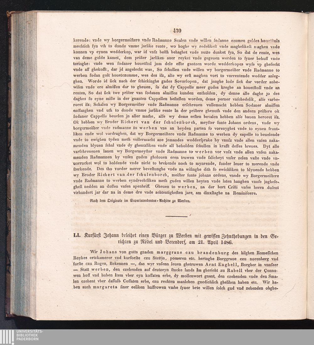 LI. Kurfürst Johann beleihet einen Bürger zu Werben mit gewissen Zehnthebungen in[...]