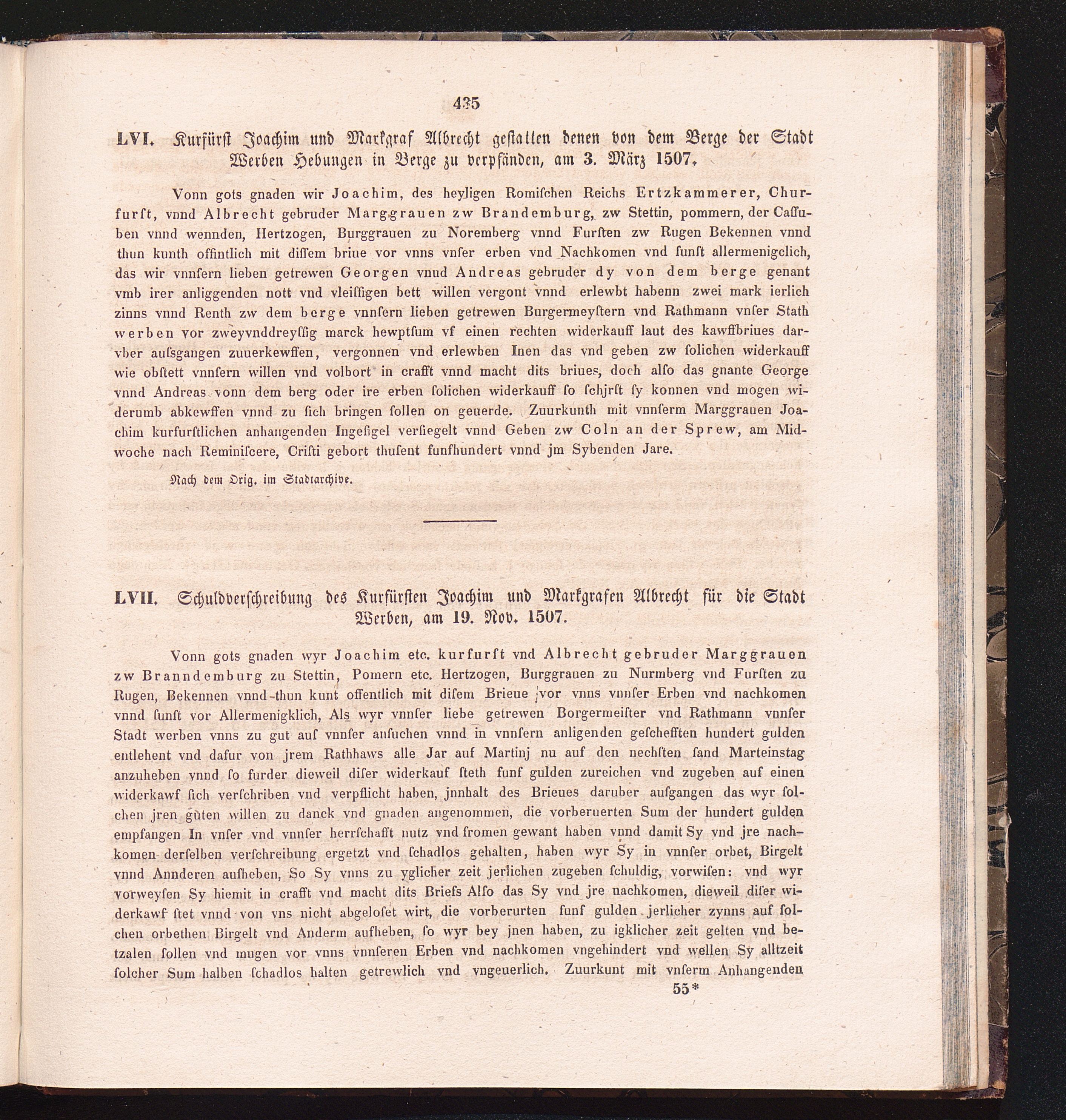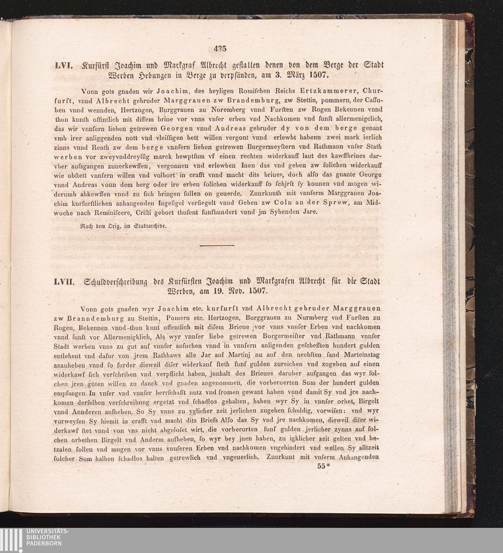 LVII. Schuldverschreibung des Kurfürsten Joachim und Markgrafen Albrecht für die[...]