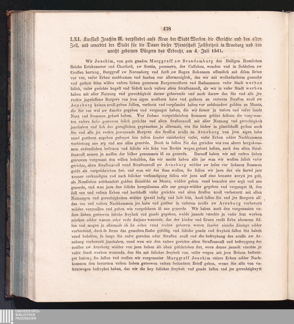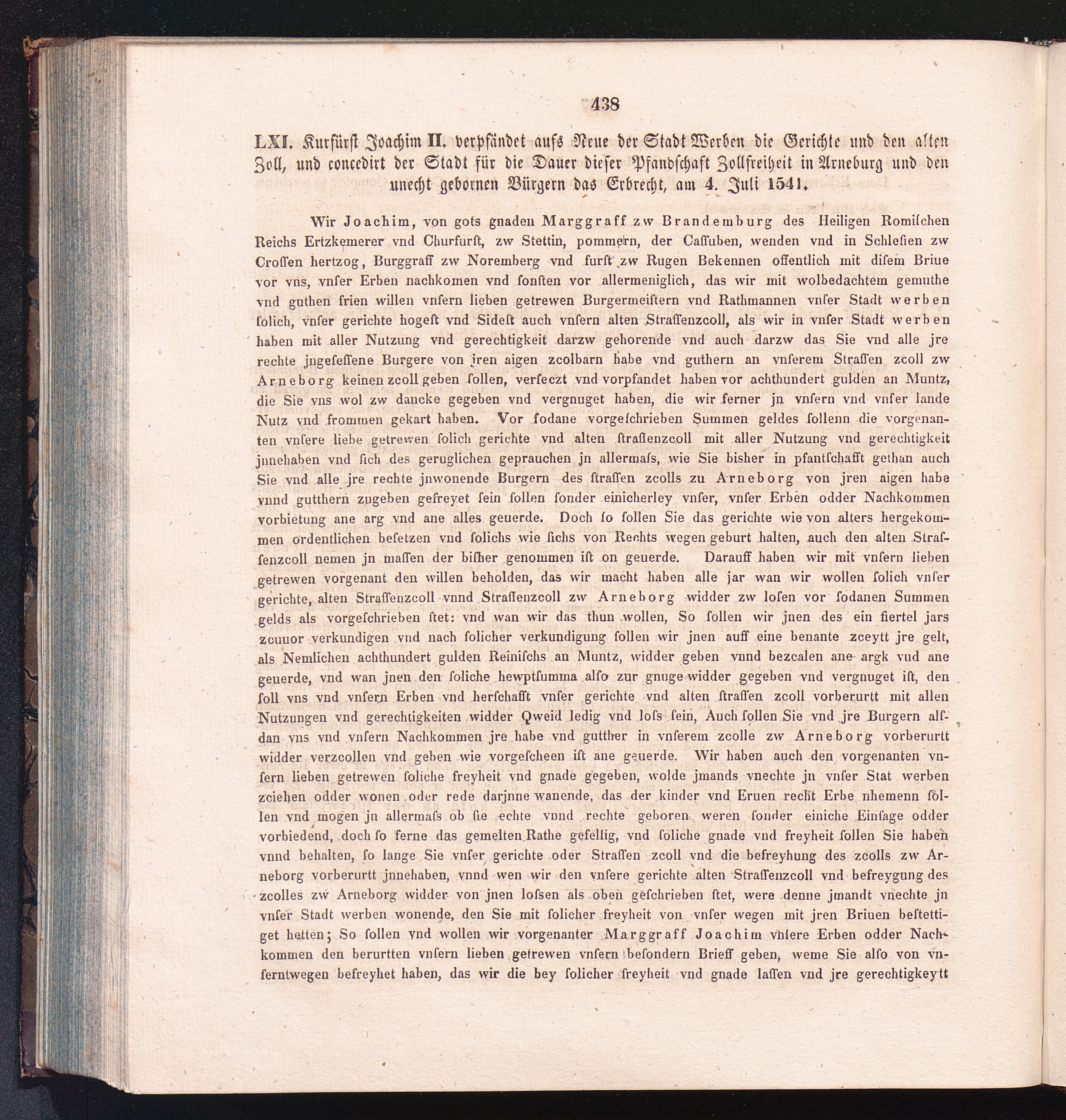 LXI. Kurfürst Joachim II. verpfändet aufs Neue der Stadt Werben die Gerichte und[...]