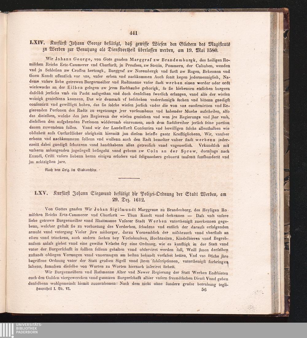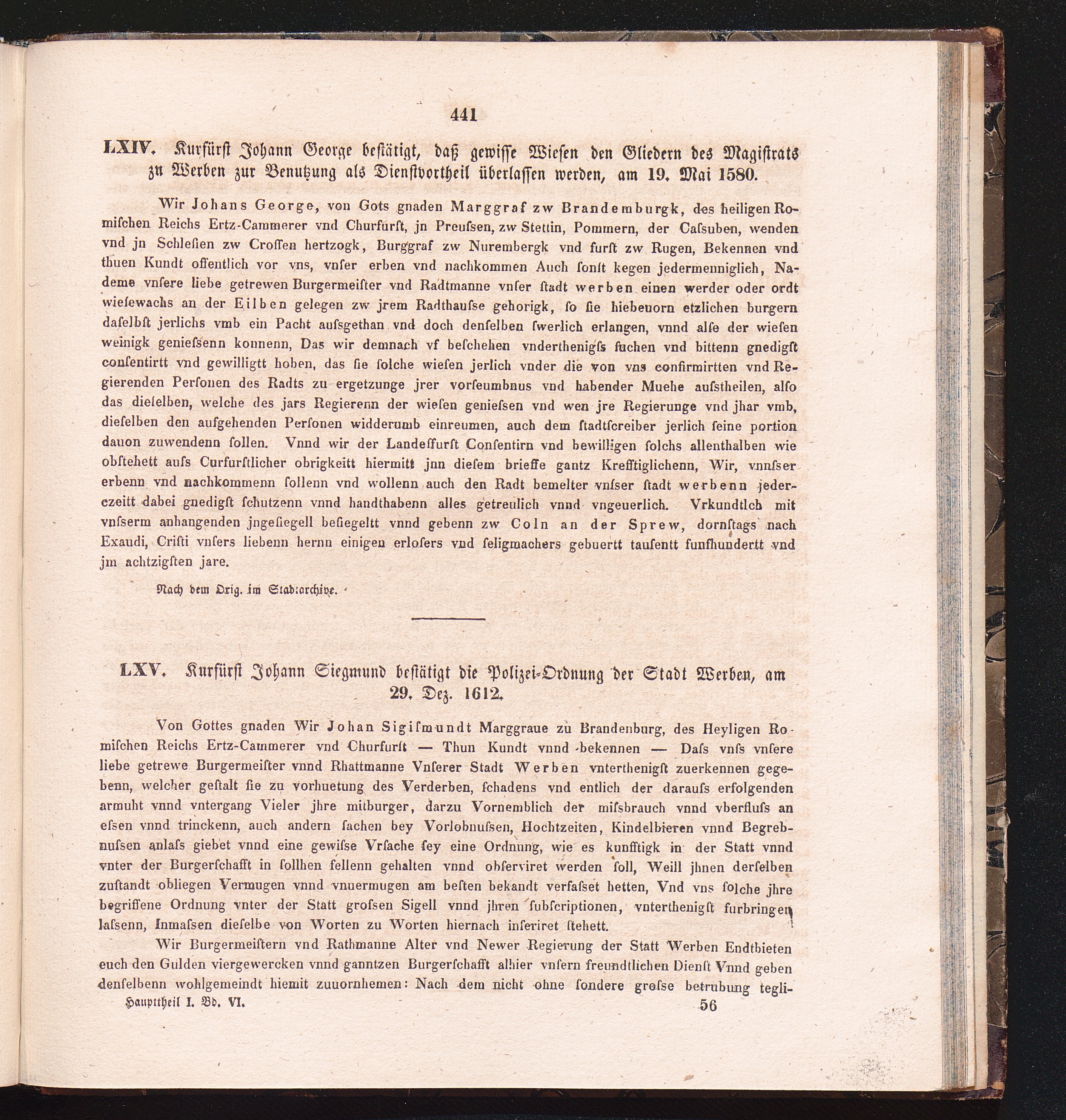 LXV. Kurfürst Johann Siegmund bestätigt die Polizei-Ordnung der Stadt Werben, am[...]