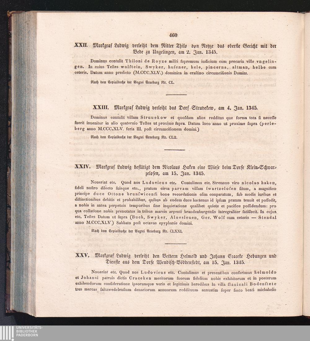 XXV. Markgraf Ludwig verleiht den Vettern Helmold und Johann Craceke Hebungen und[...]