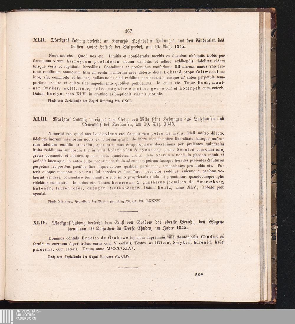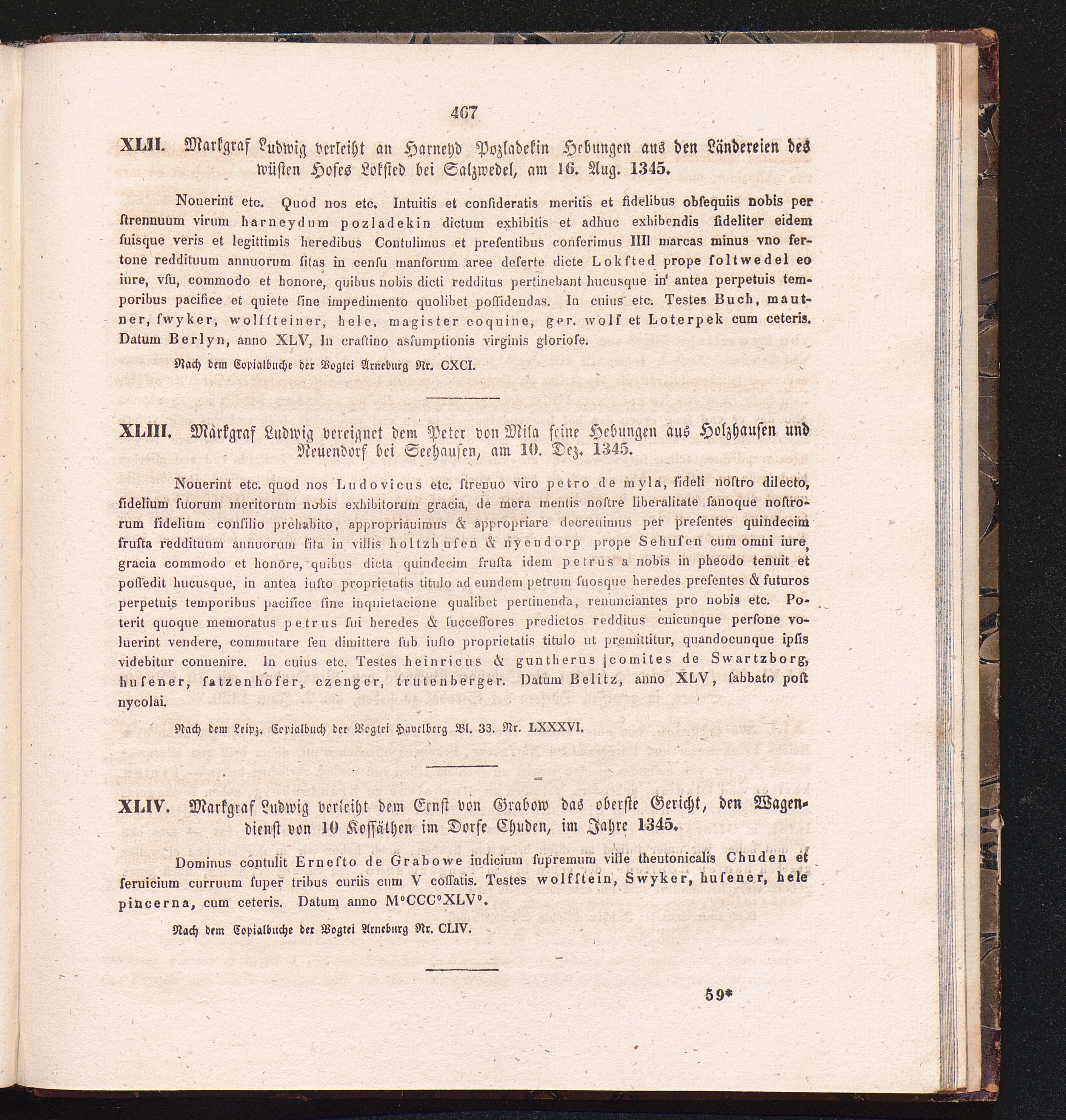 XLIV. Markgraf Ludwig verleiht dem Ernst von Grabow das oberste Gericht, den Wagendienst[...]