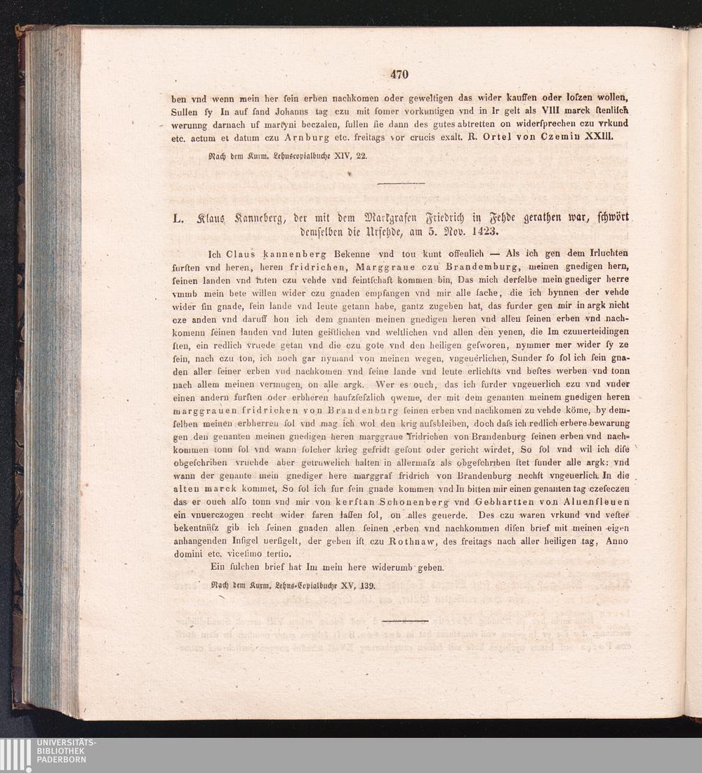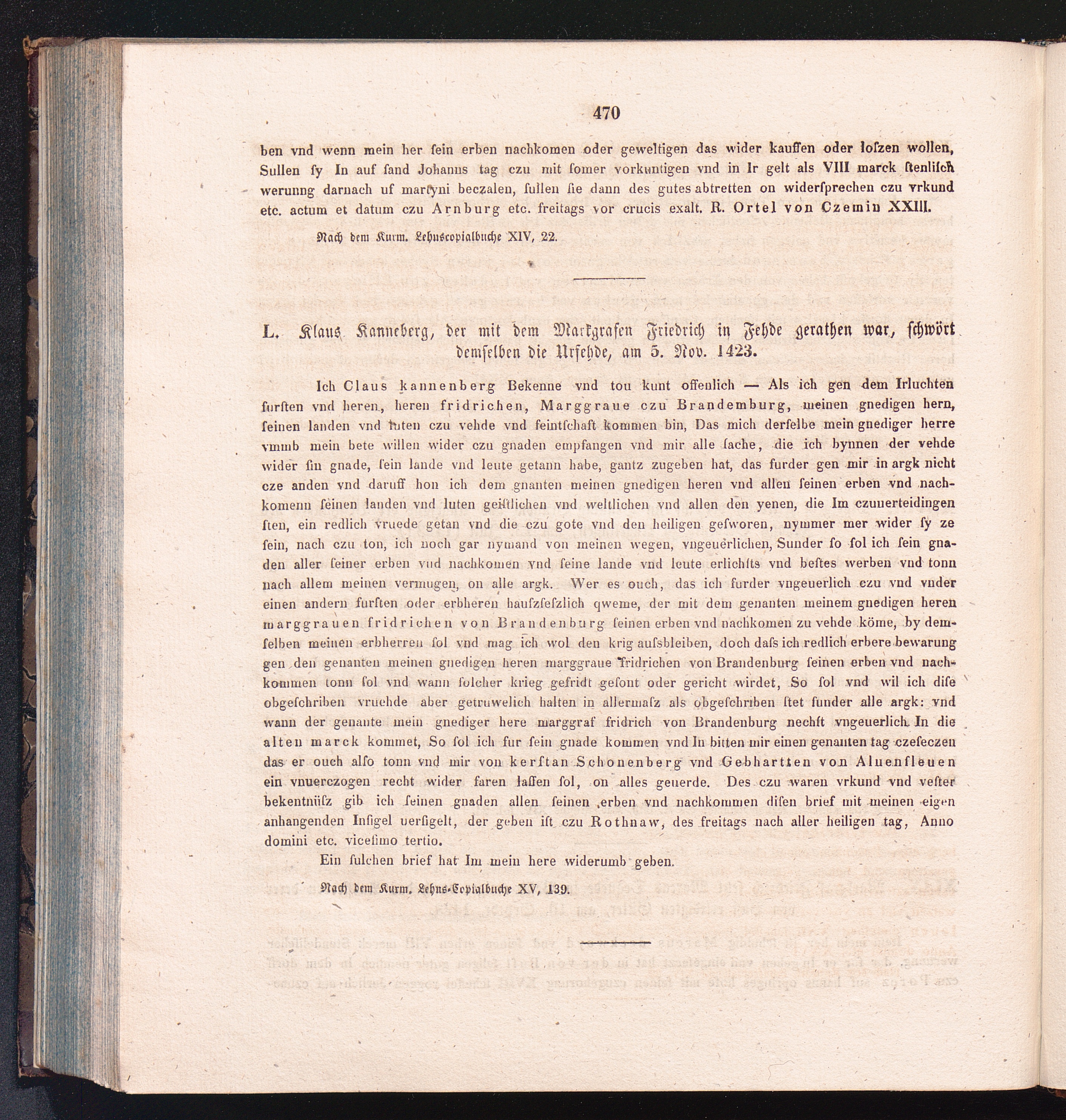 L. Klaus Kanneberg, der mit dem Markgrafen Friedrich in Fehde gerathen war, schwört[...]