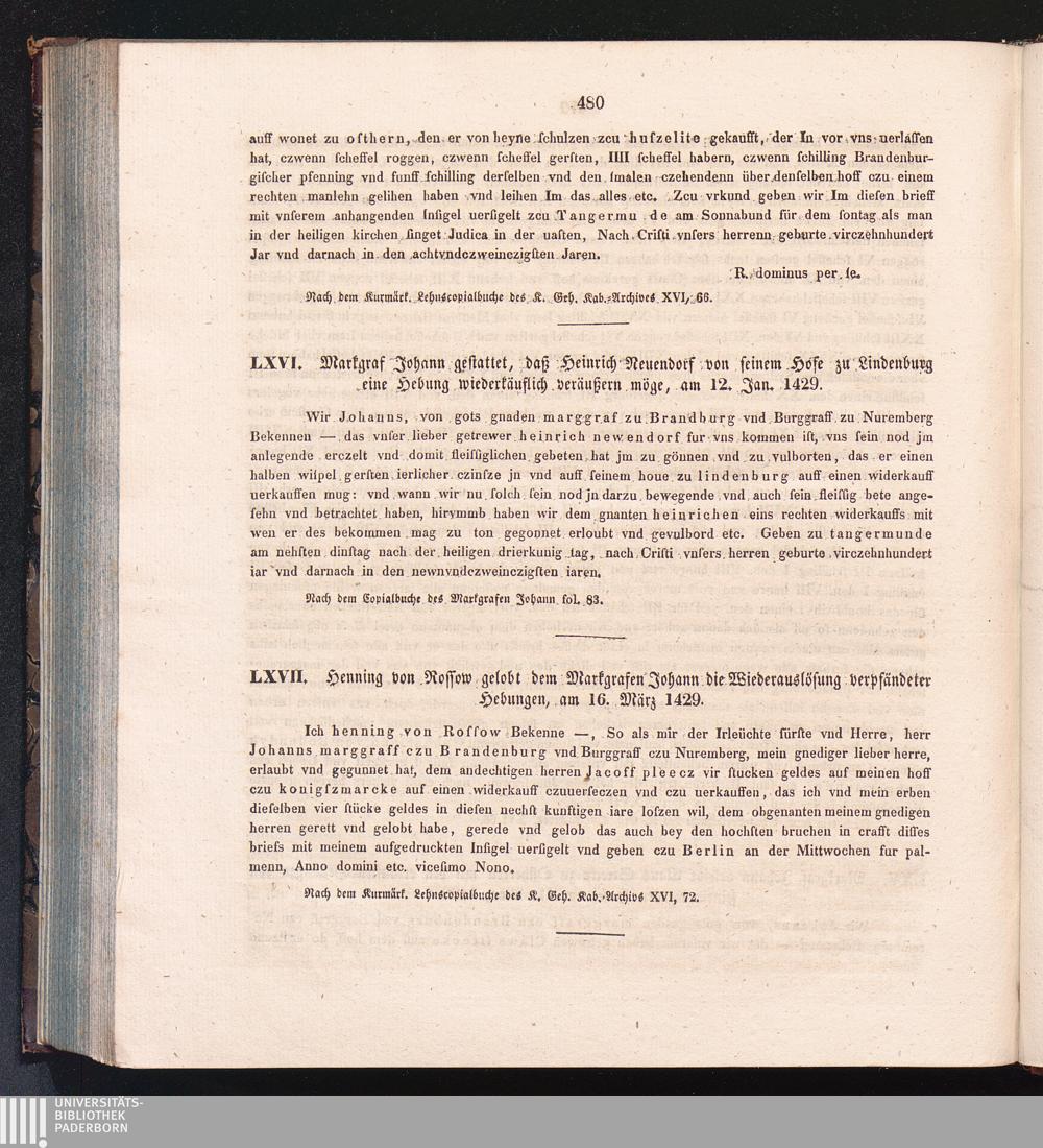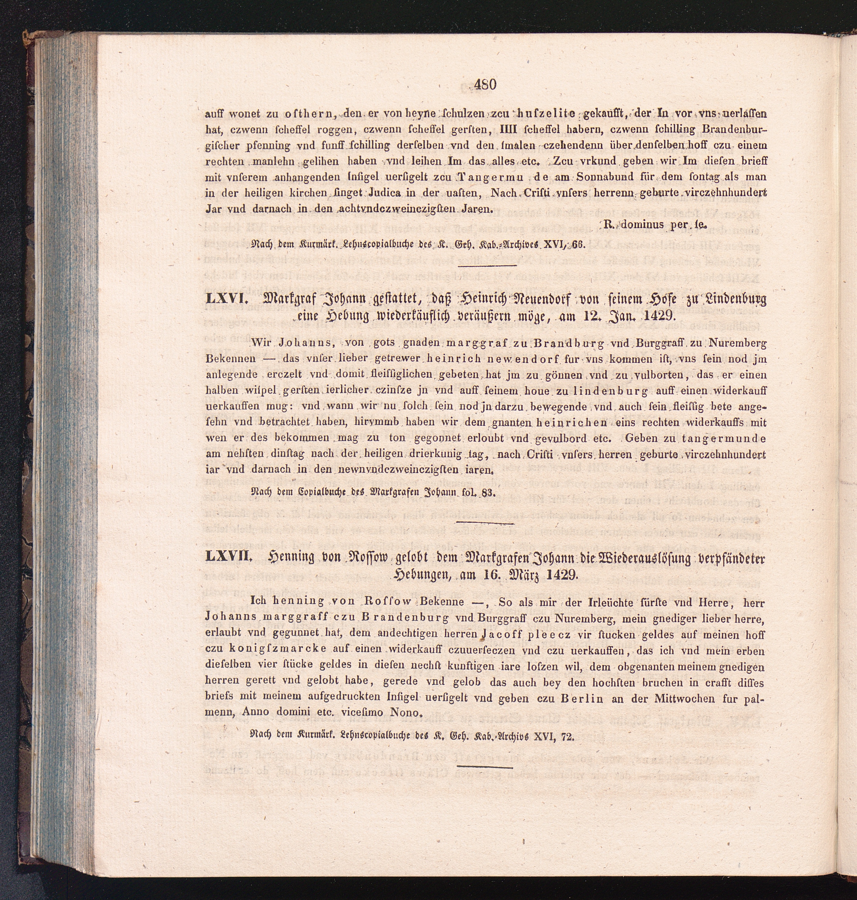 LXVII. Henning von Rossow gelobt dem Markgrafen Johann die Wiederauflösung verpfändeter[...]