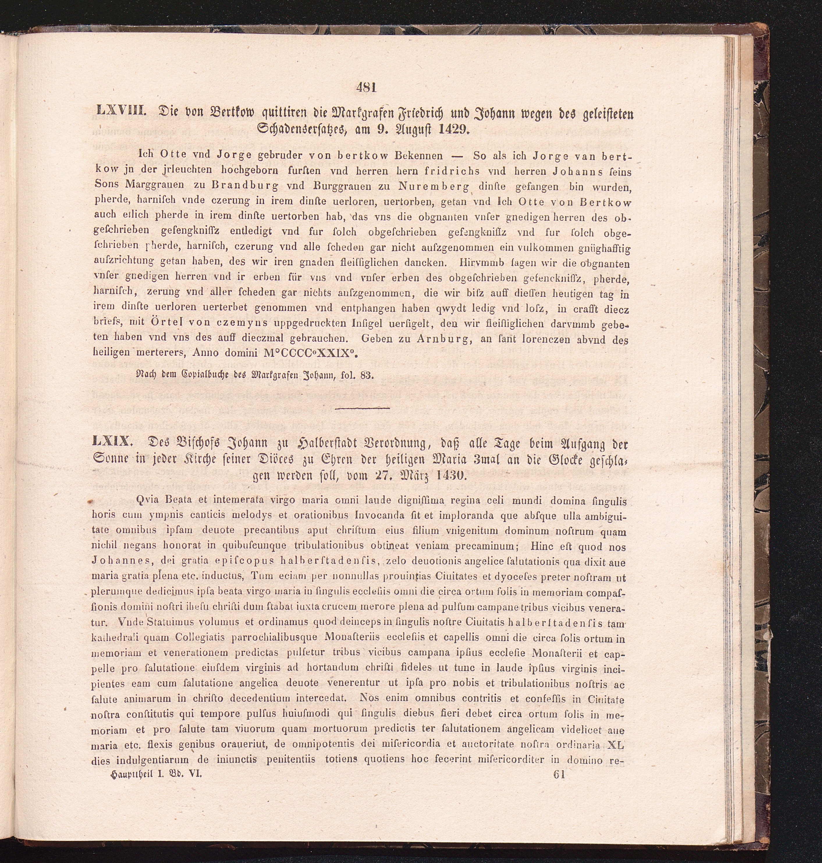 LXIX. Des Bischofs Johann zu Halberstadt Verordnung, daß alle Tage beim Aufgang der[...]