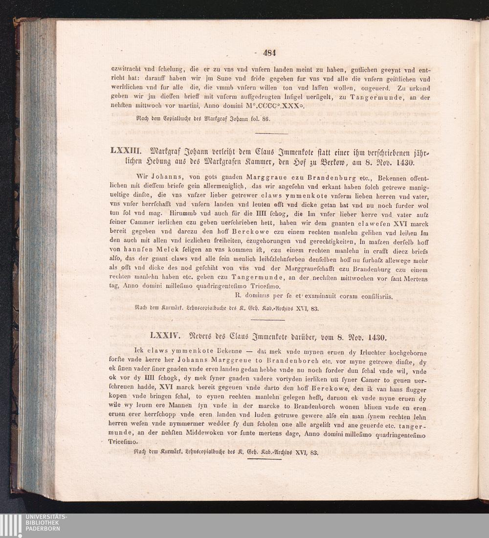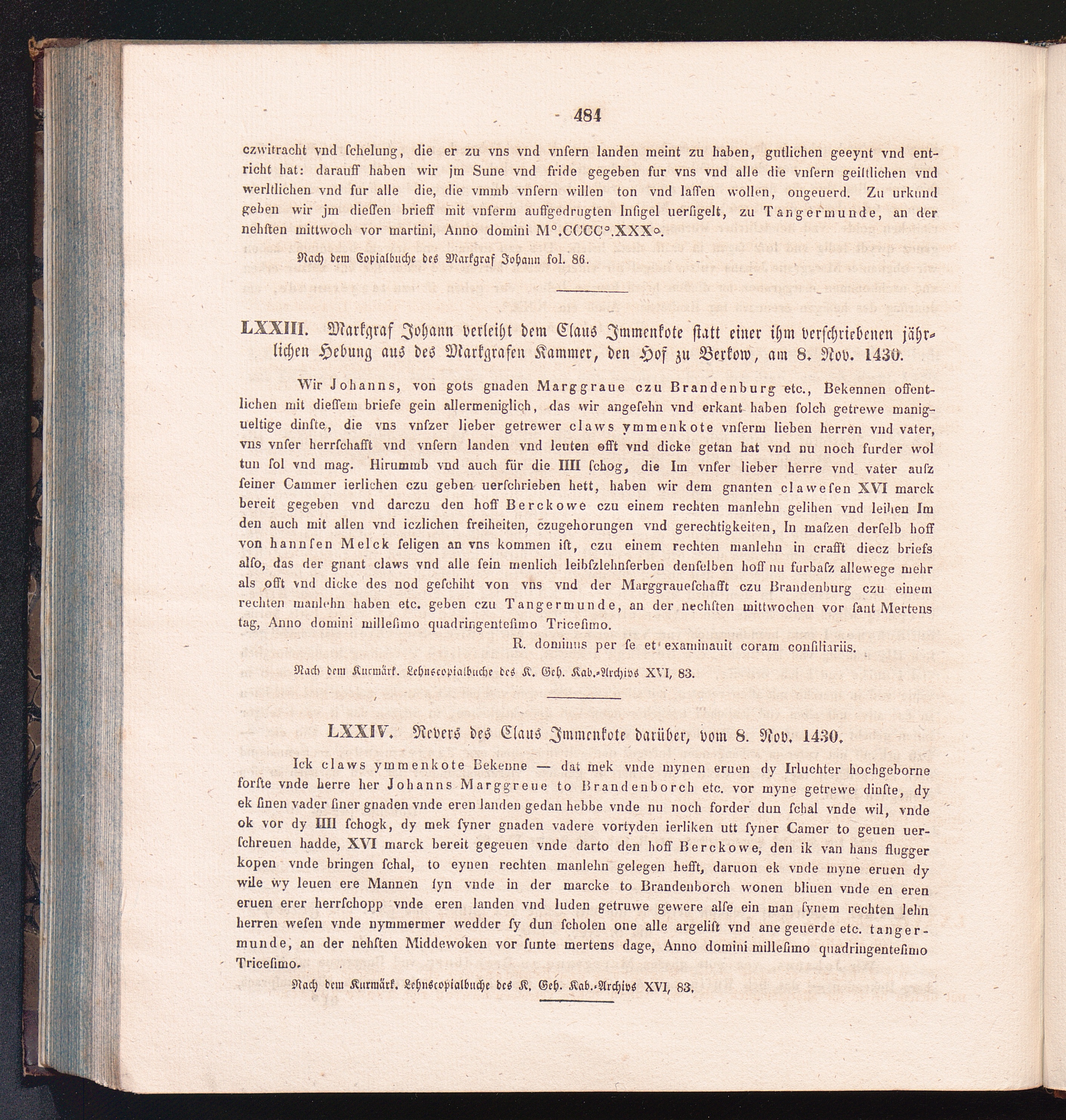 LXXIV. Revers des Claus Immenkote darüber, vom 8. Nov. 1430.