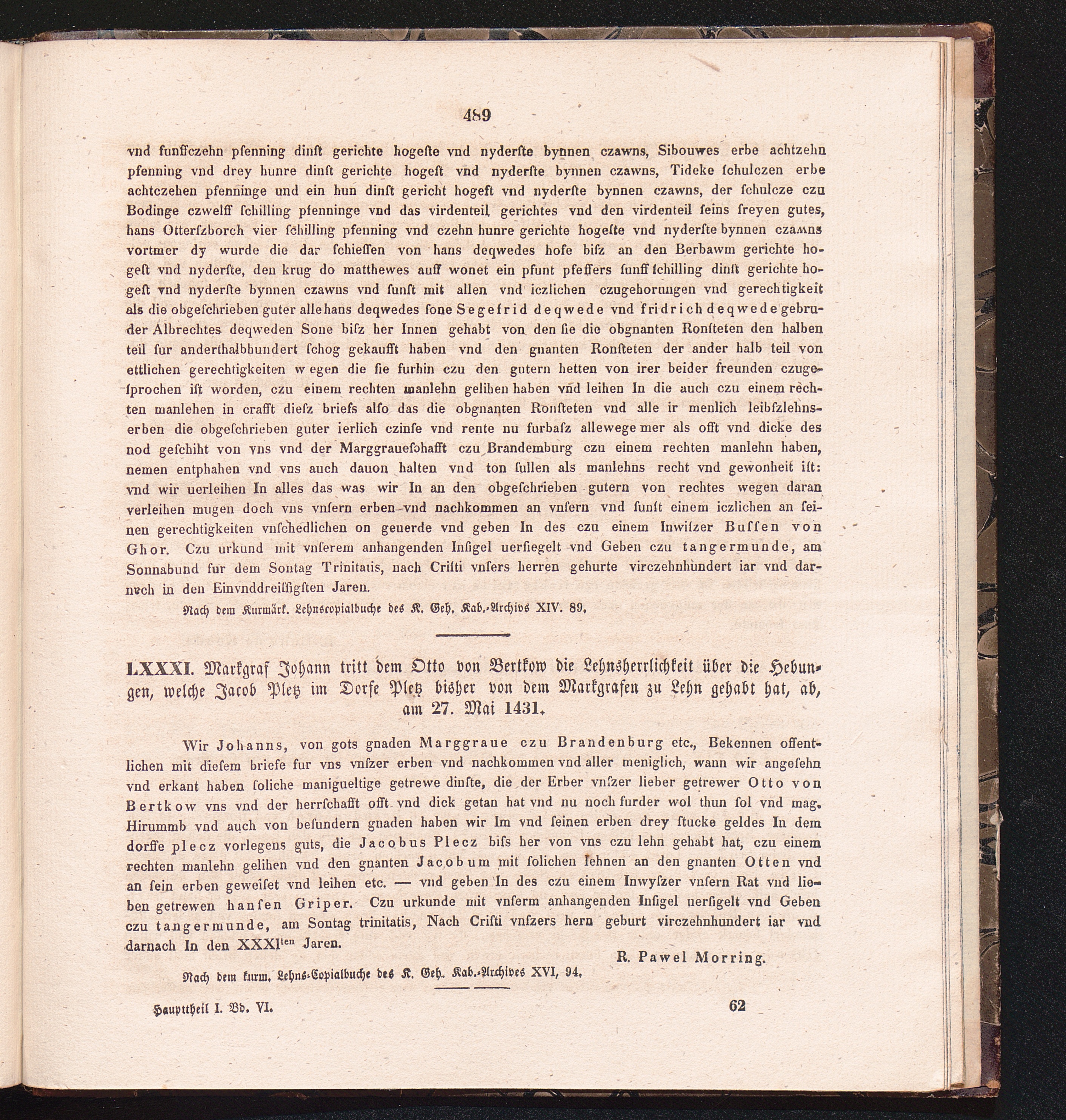 LXXXI. Markgraf Johann tritt dem Otto von Bertkow die Lehnsherrlichkeit über die[...]