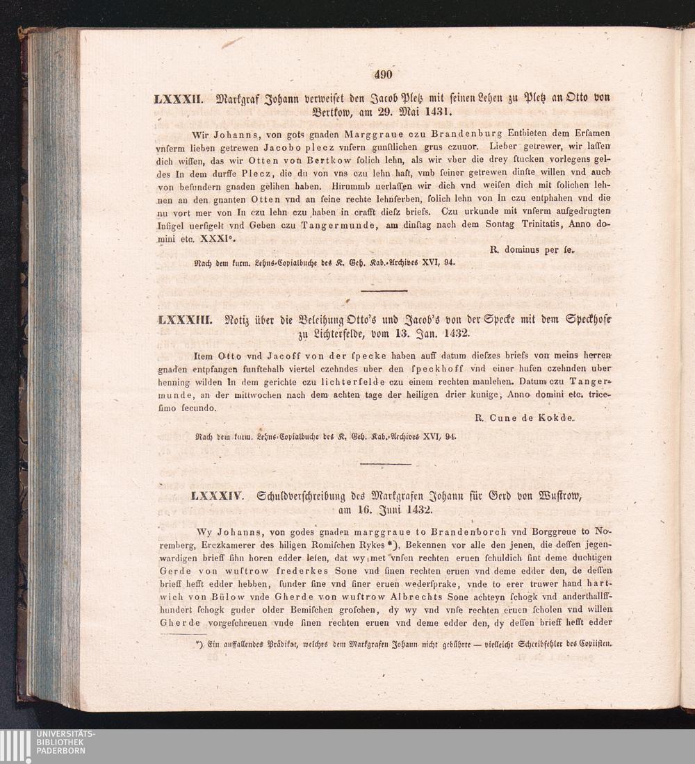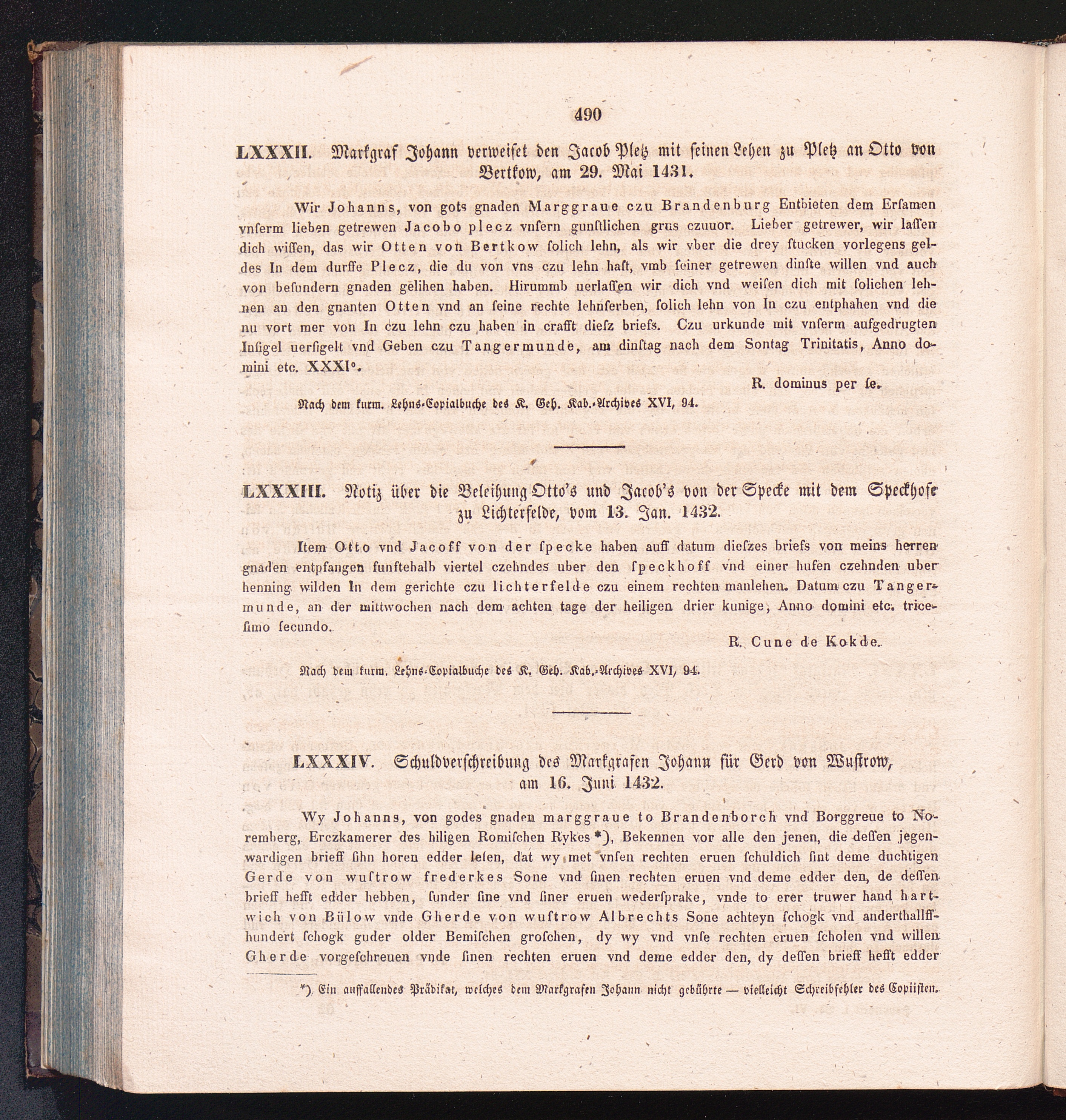 LXXXIV. Schuldverschreibung des Markgrafen Johann für Gerd von Wustrow, am 16. Juni[...]