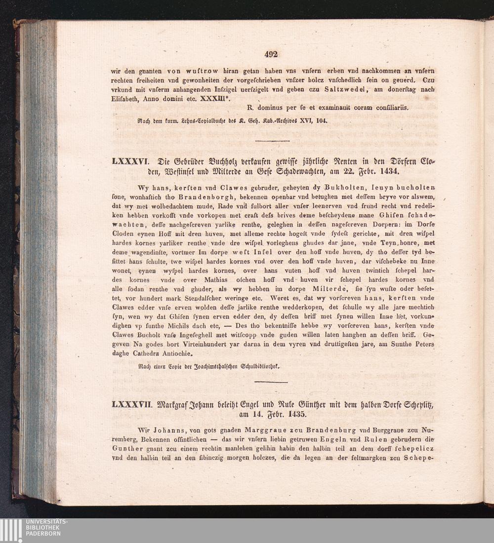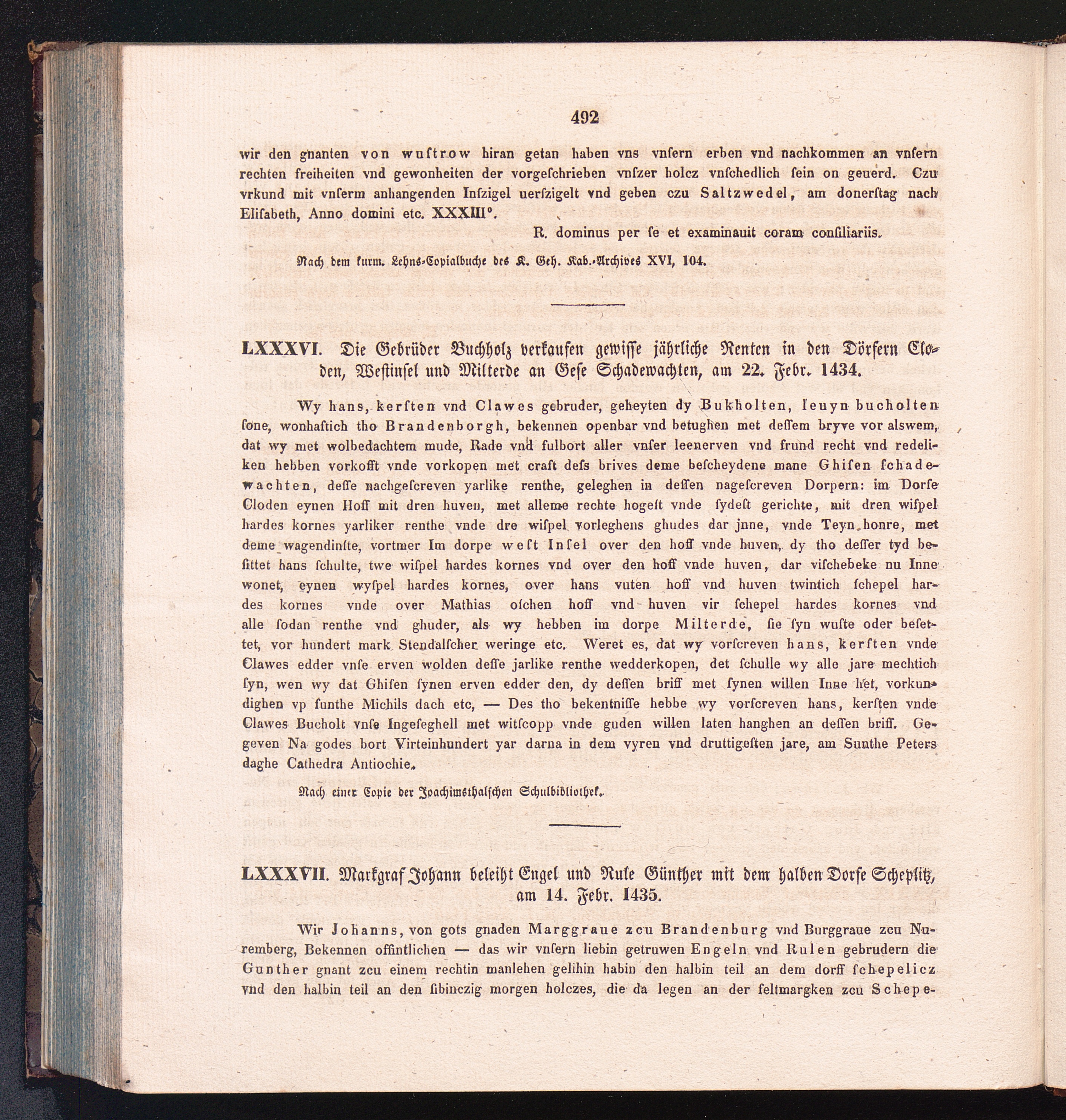 LXXXVII. Markgraf Johann beleiht Engel und Rule Günther mit dem halben Dorfe Scheplitz,[...]