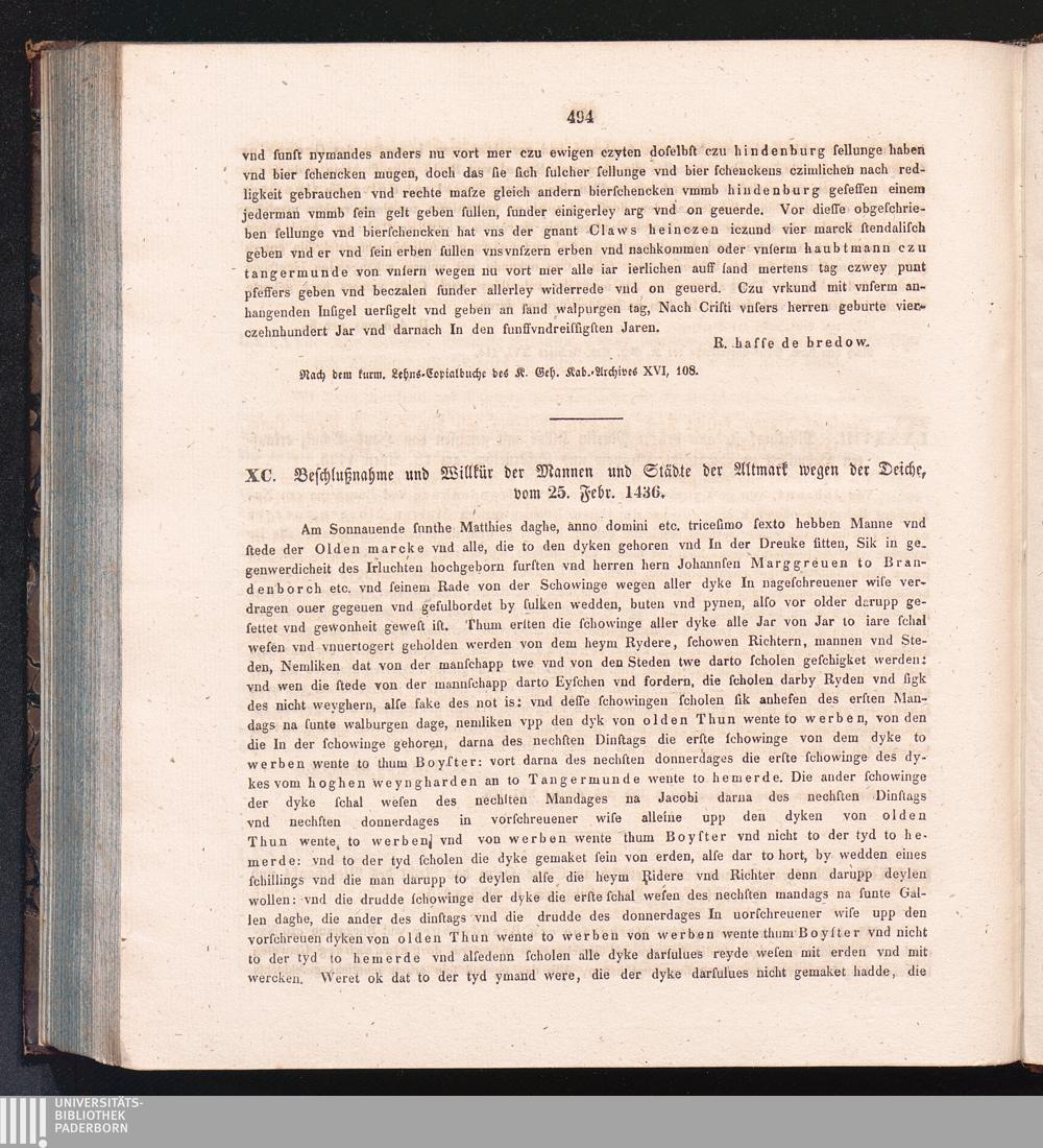 XC. Beschlußnahme und Willkür der Mannen und Stadt der Altmark wegen der Deiche,[...]