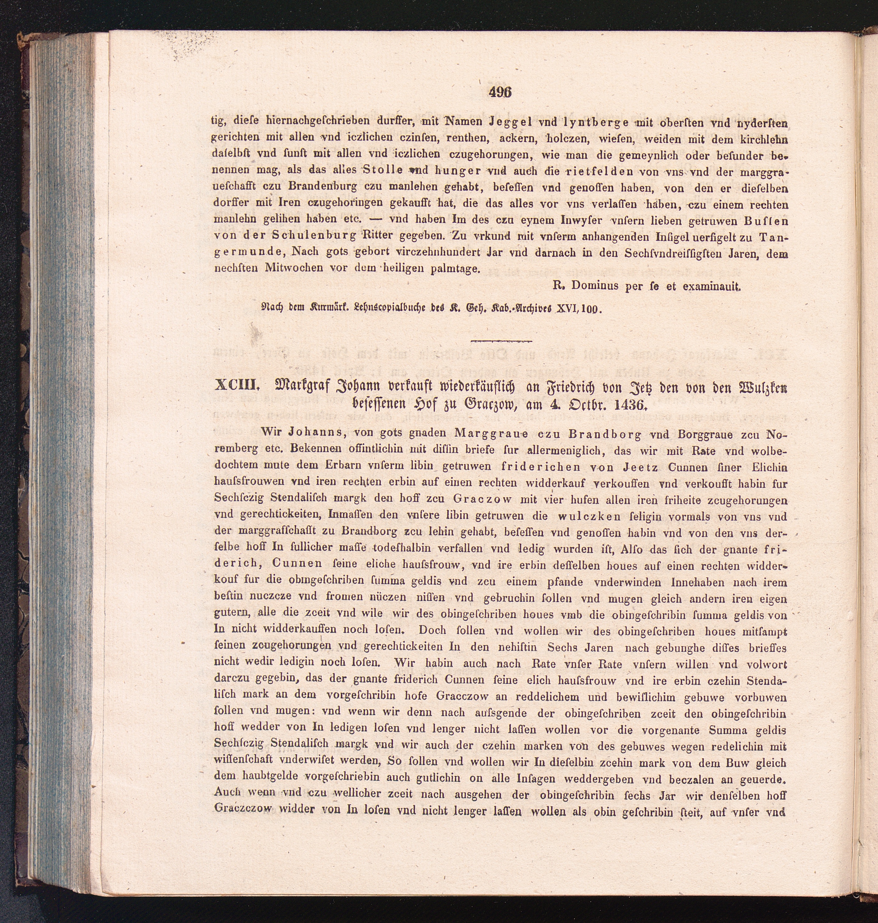 XCIII. Markgraf Johann verkauft wiederkäuflich an Friedrich von Jetz den von den[...]