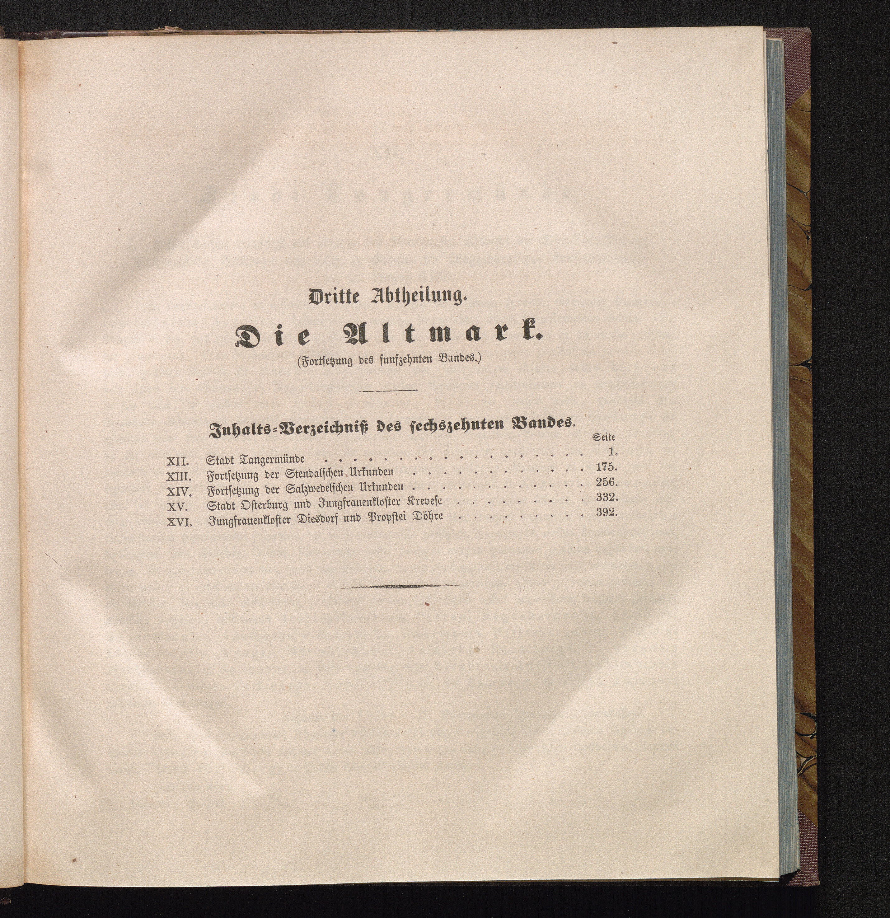 Dritte Abteilung. Die Altmark. (Fortsetzung des fünfzehnten Bandes.)
