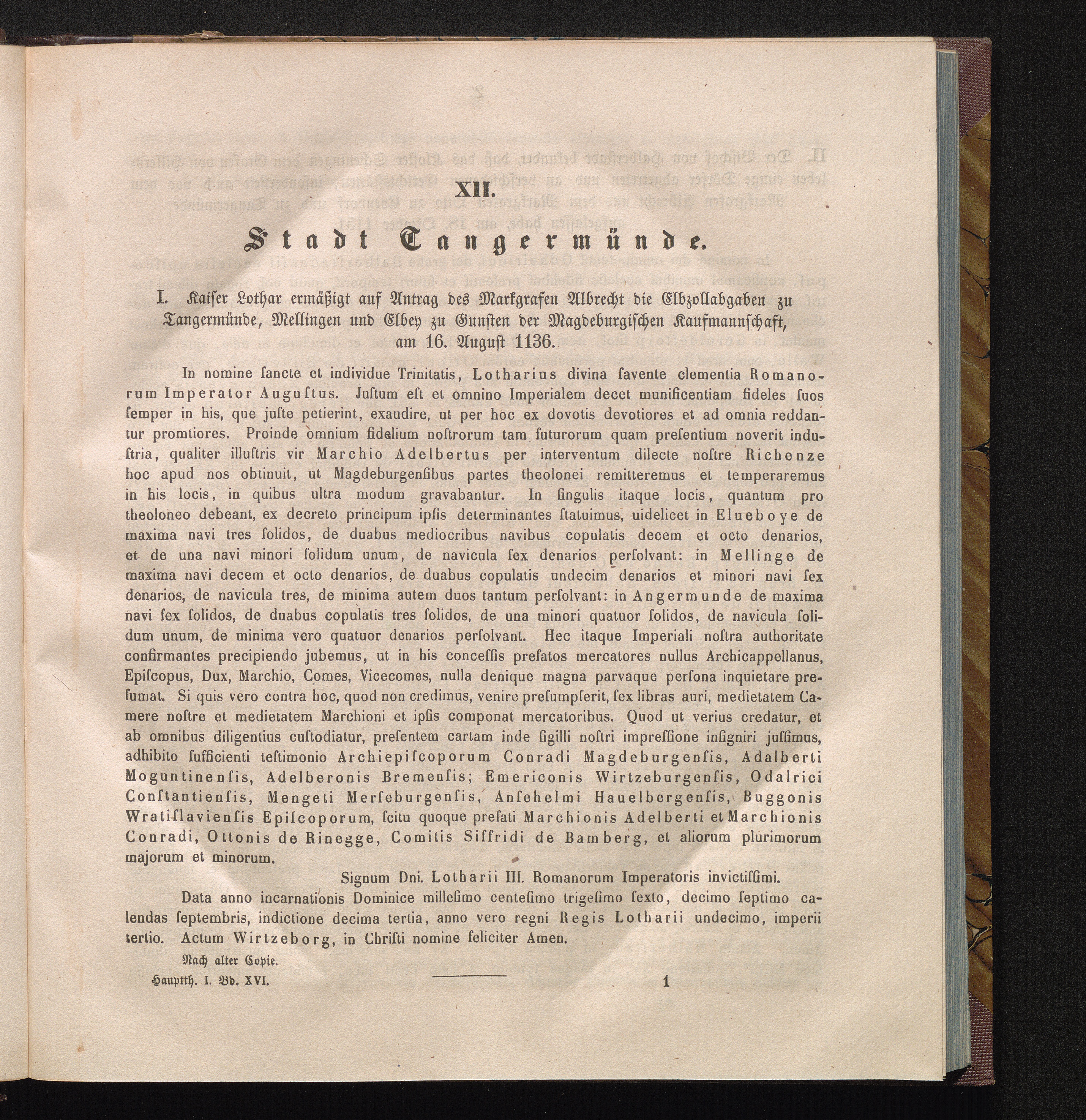 I. Kaiser Lothar ermäßigt auf Antrag des Markgrafen Albrecht die Elbzollabgaben zu[...]