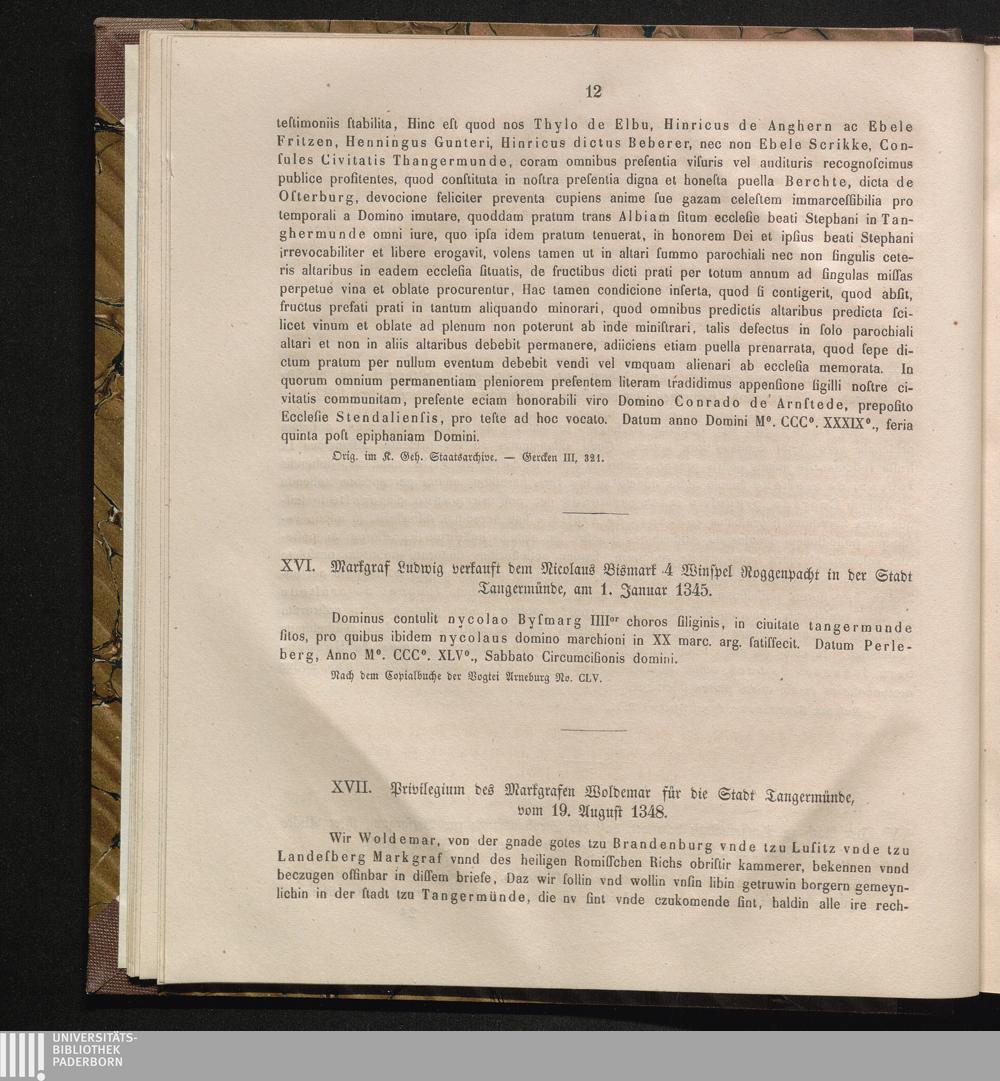 XVII. Privilegium des Markgrafen Woldemar für die Stadt Tangermünde, vom 19. August[...]