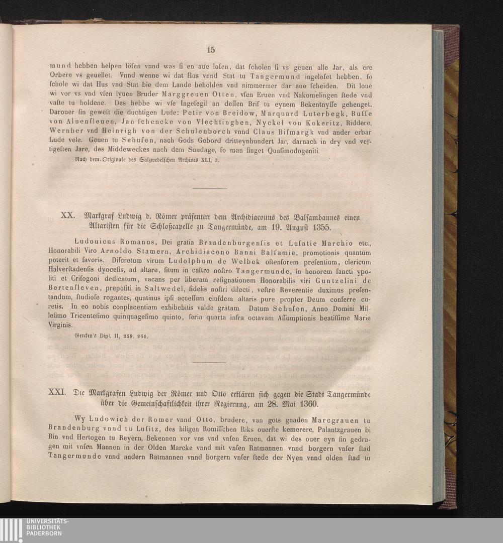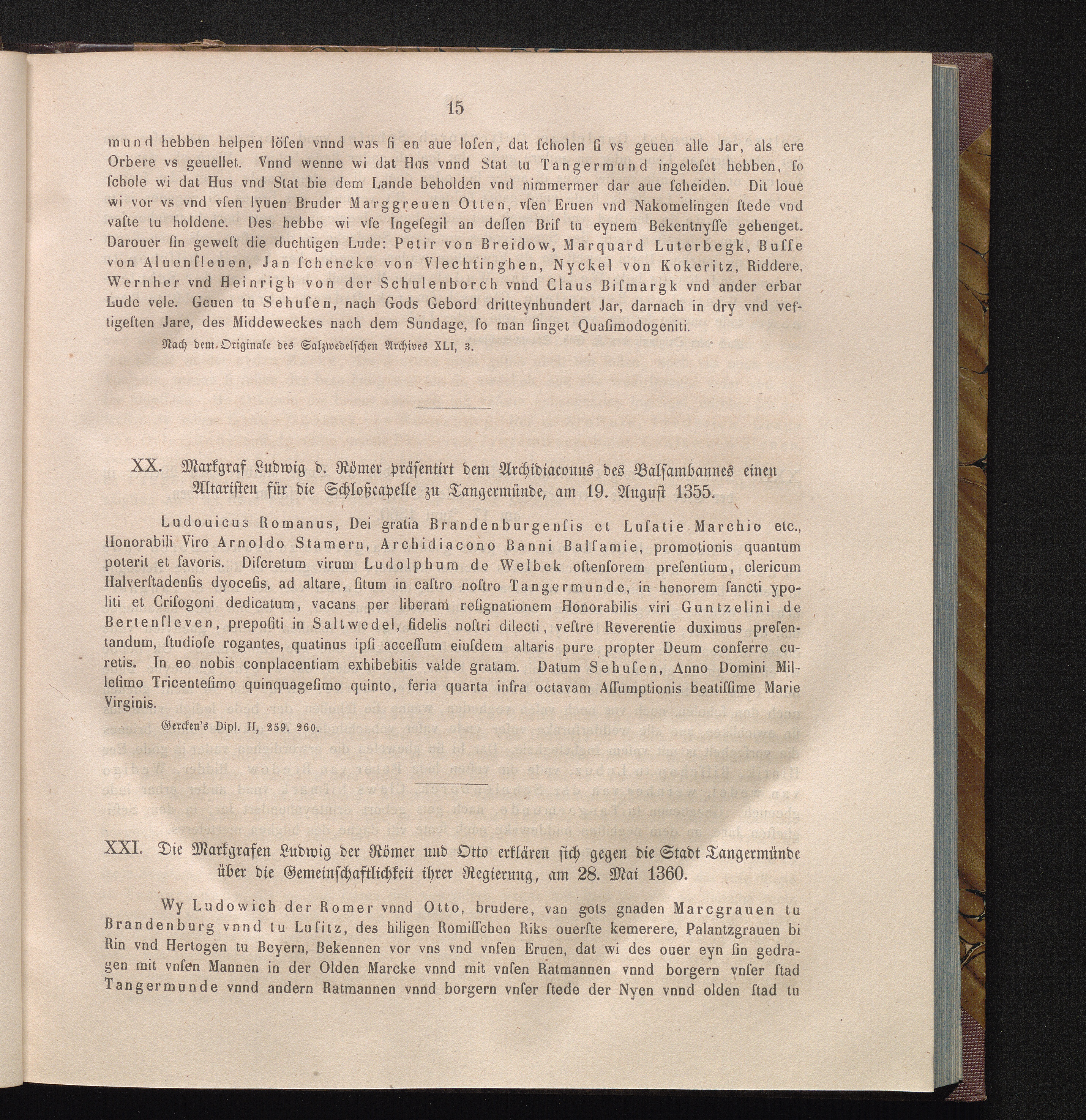 XXI. Die Markgrafen Ludwig der Römer und Otto erklären sich gegen die Stadt Tangermünde[...]
