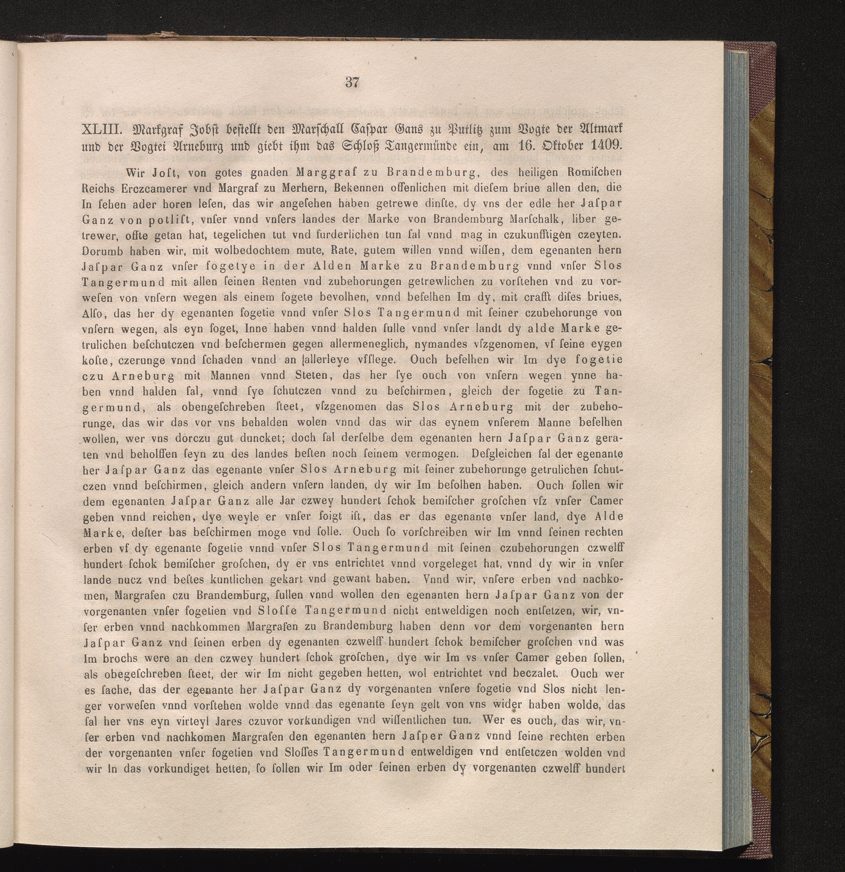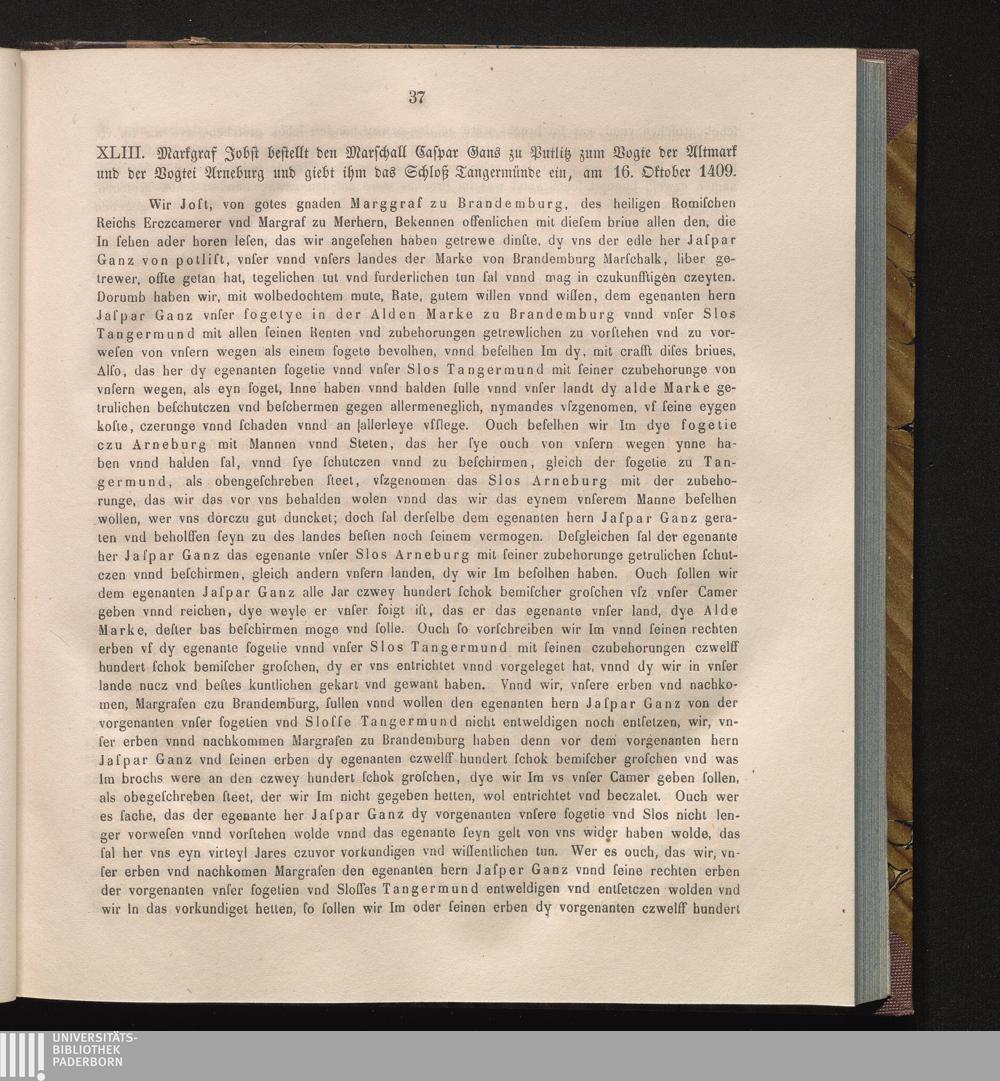 XLIII. Markgraf Jobst bestellt den Marschall Caspar Gans zu Putlitz zum Vogte der[...]