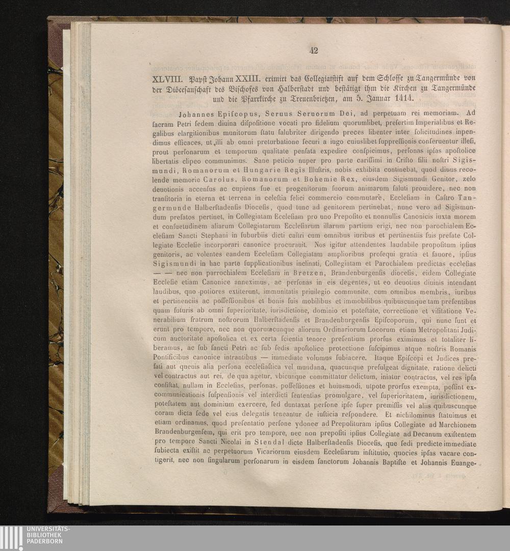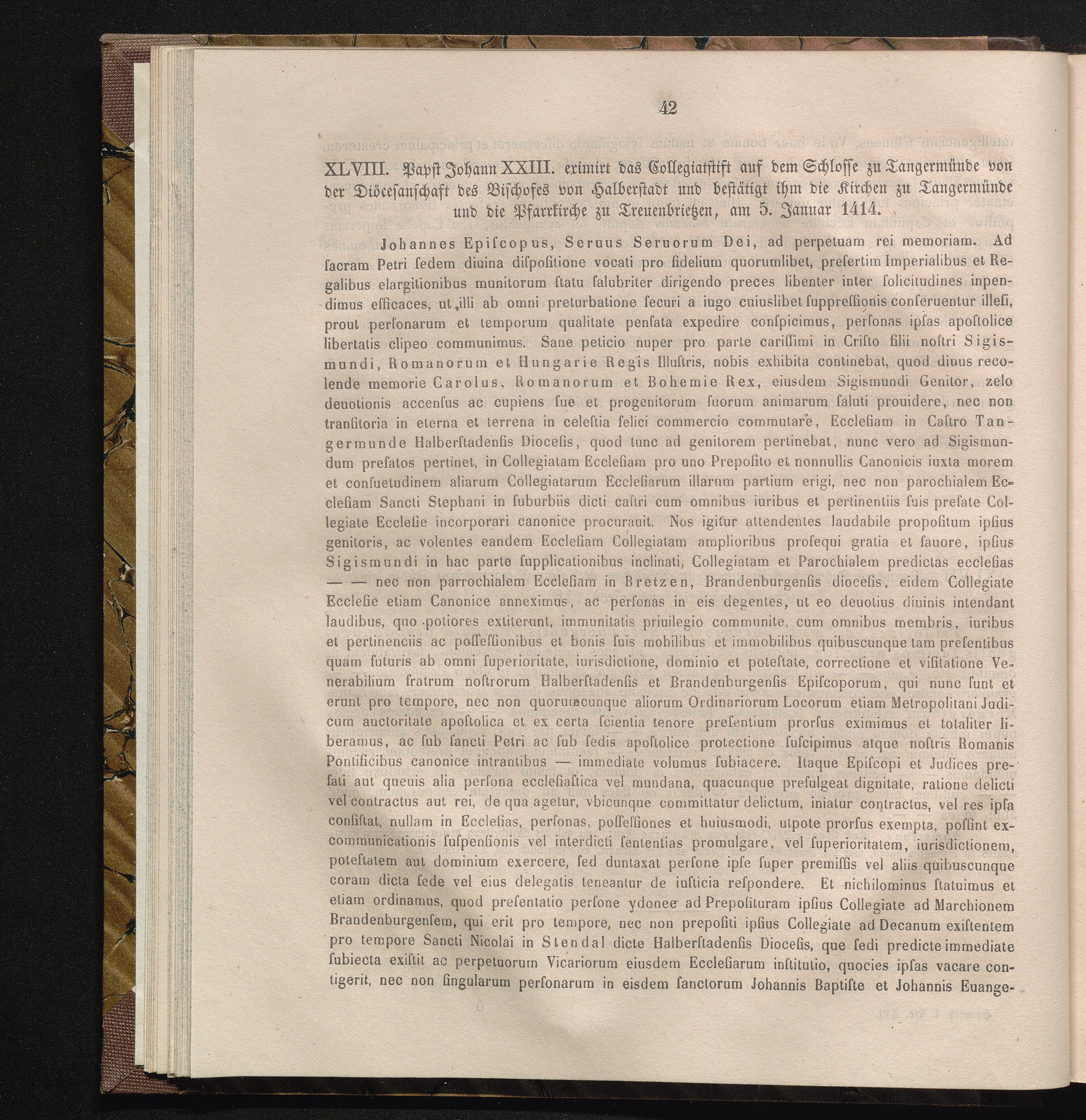 XLVIII. Papst Johann XXIII. eximirt das Collegiatstift auf dem Schlosse zu Tangermünde[...]
