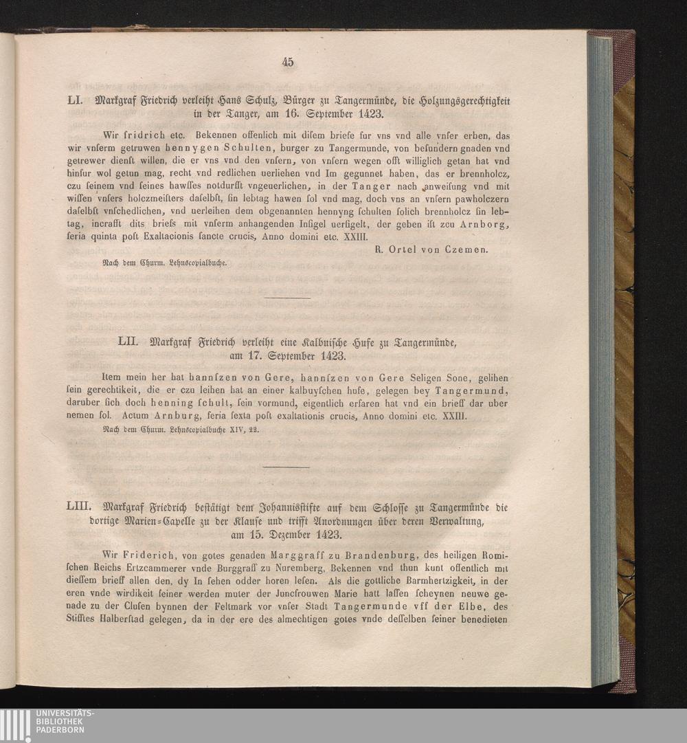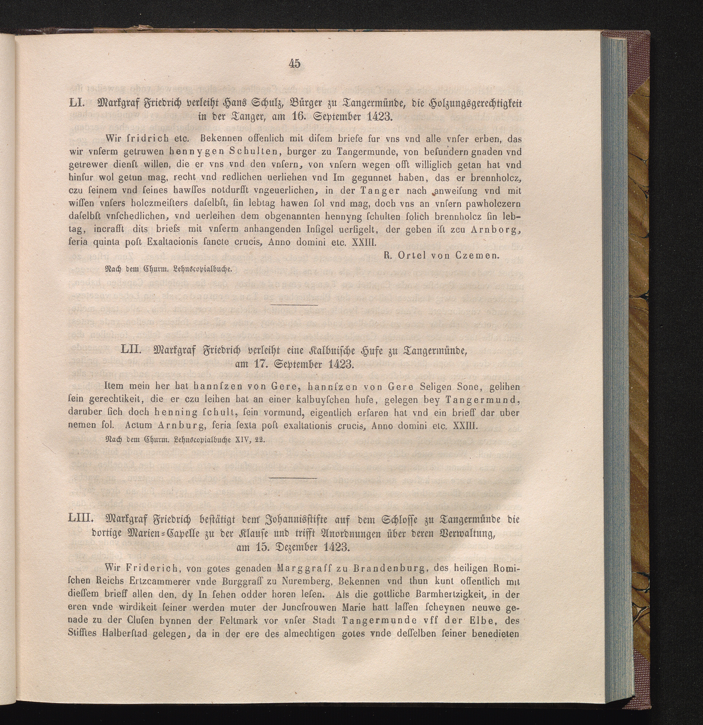 LIII. Markgraf Friedrich bestätigt dem Johannisstifte auf dem Schlosse zu Tangermünde[...]