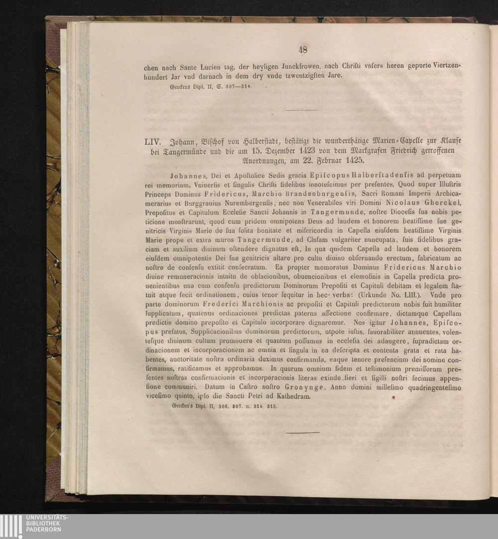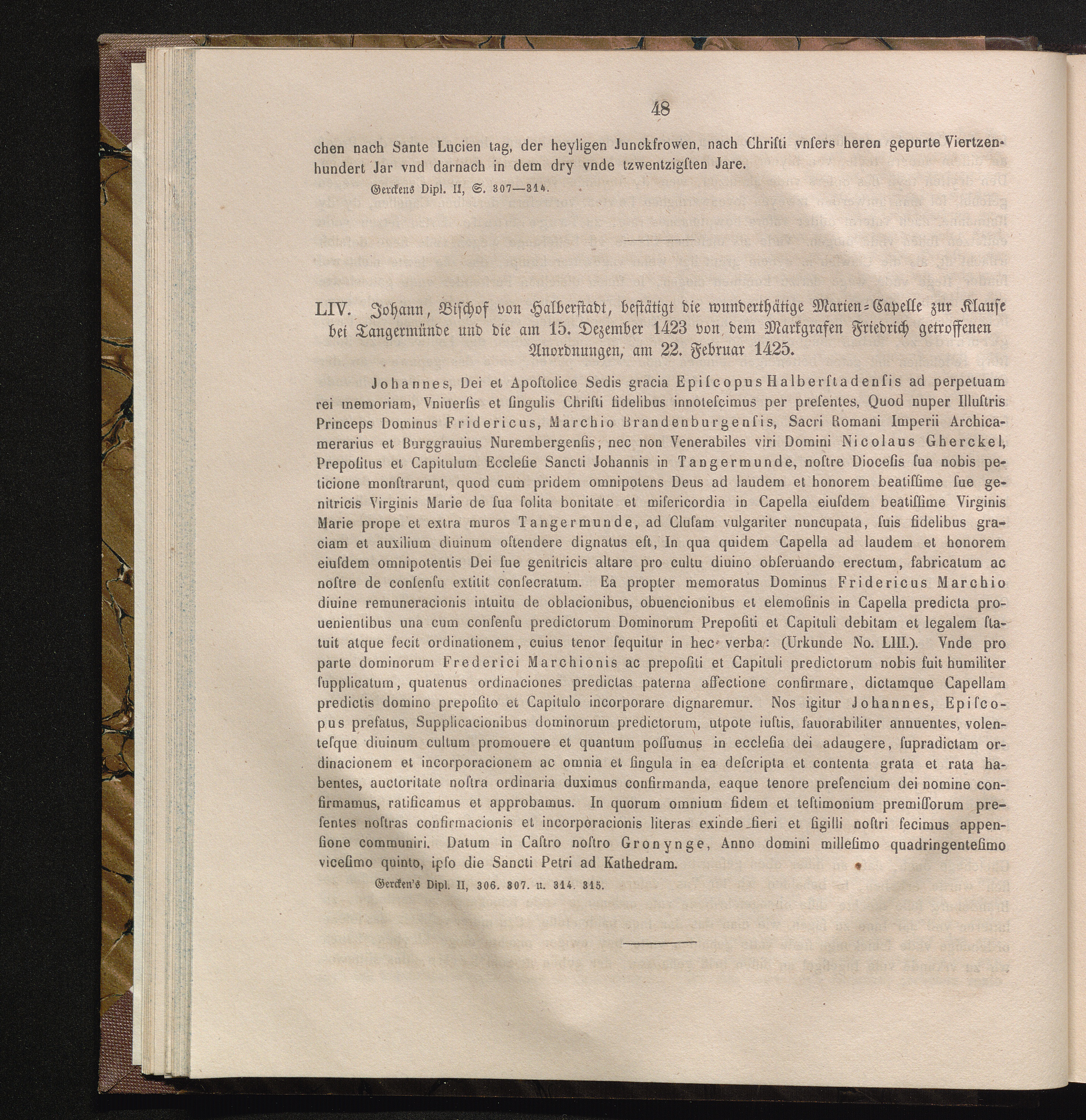 LIV. Johann, Bischof von Halberstadt, bestätigt die wunderthätige Marien-Capelle[...]