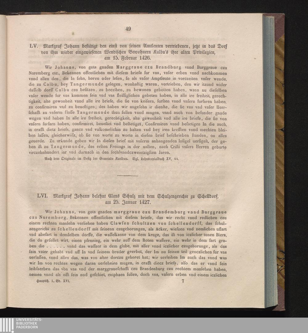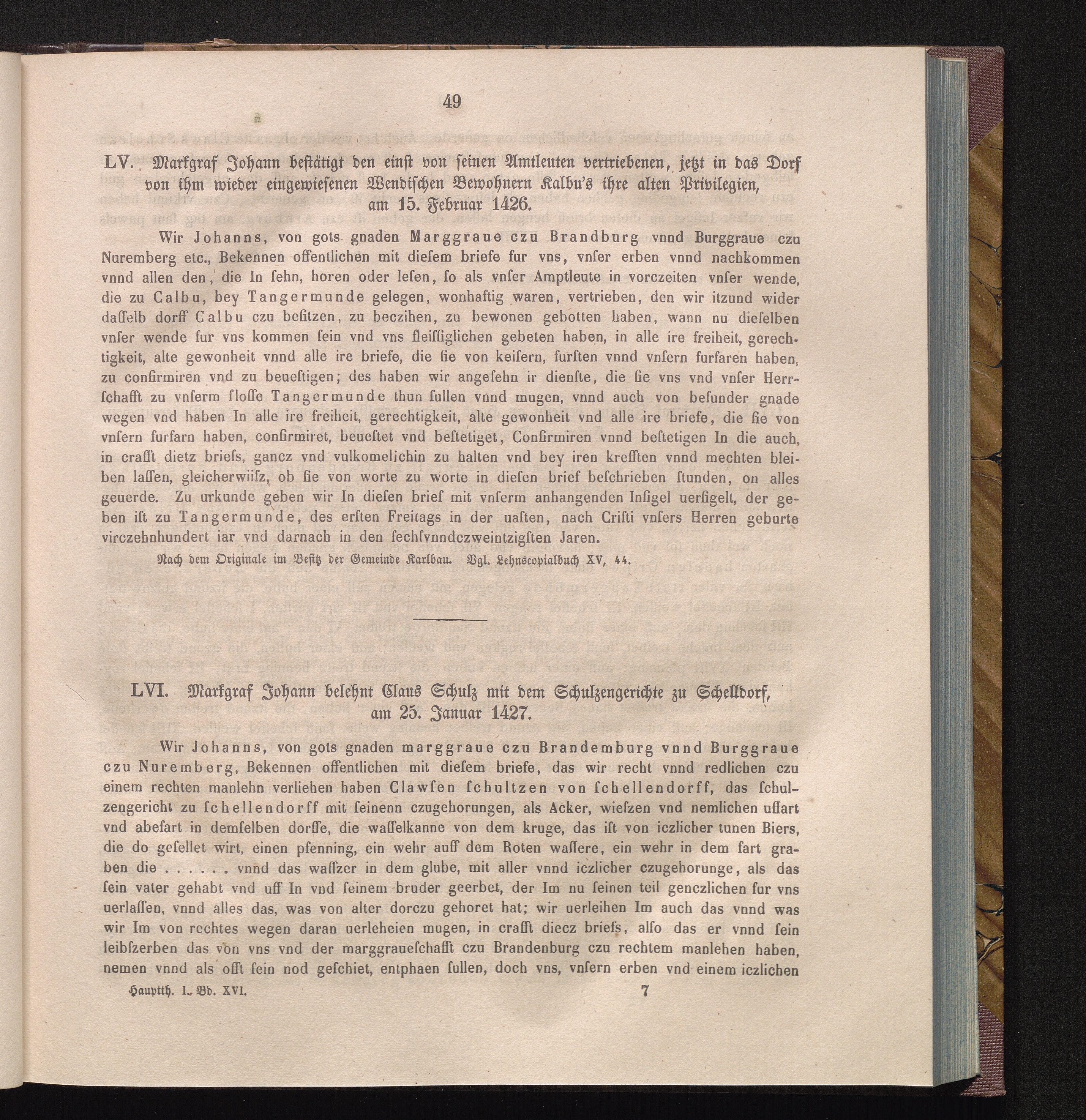 LVI. Markgraf Johann belehnt Claus Schulz mit dem Schulzengericht zu Schelldorf,[...]