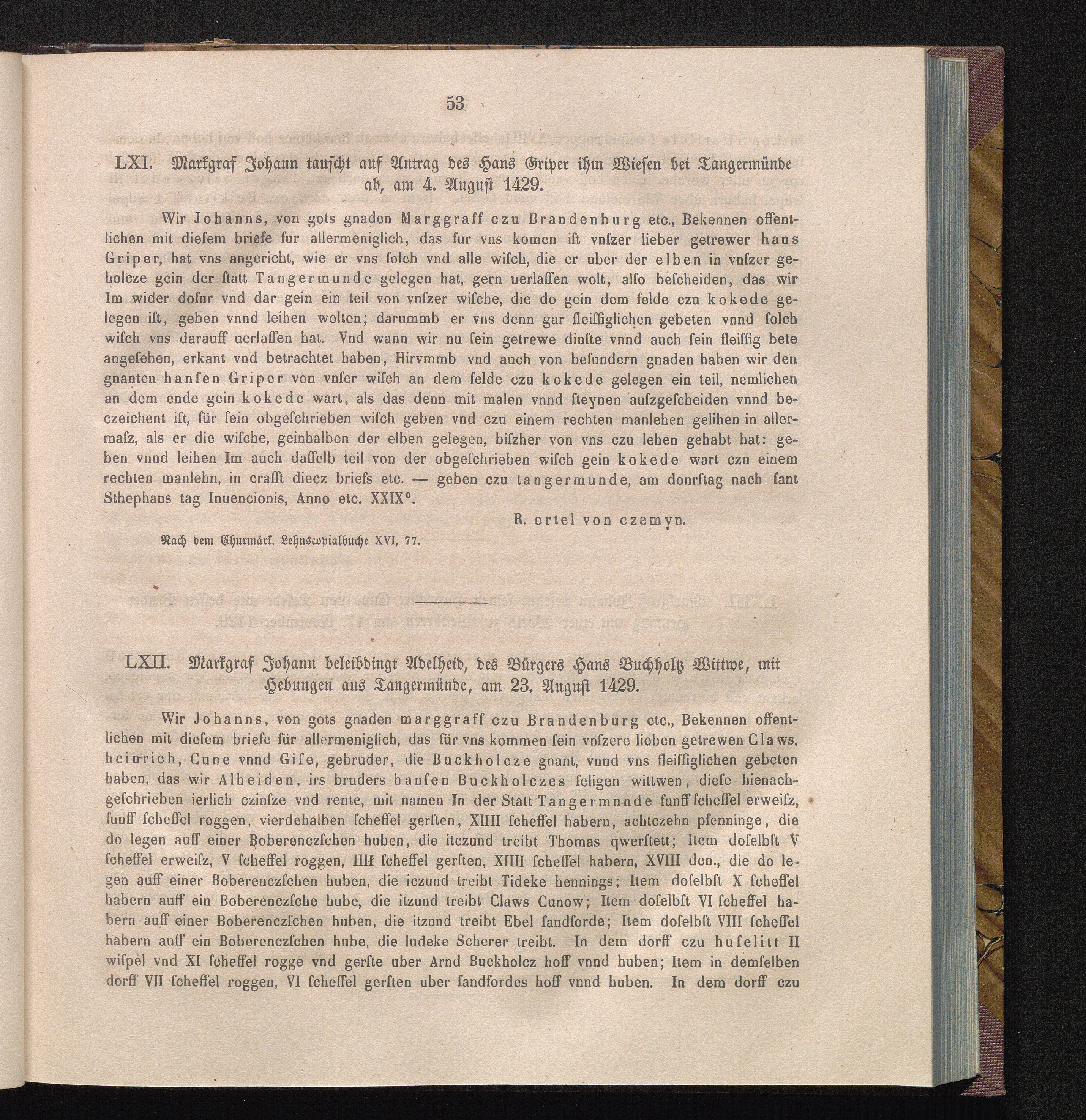LXII. Markgraf Johann beleibdingt Adelheid, des Bürgers Hans Buchholtz Wittwe, mit[...]