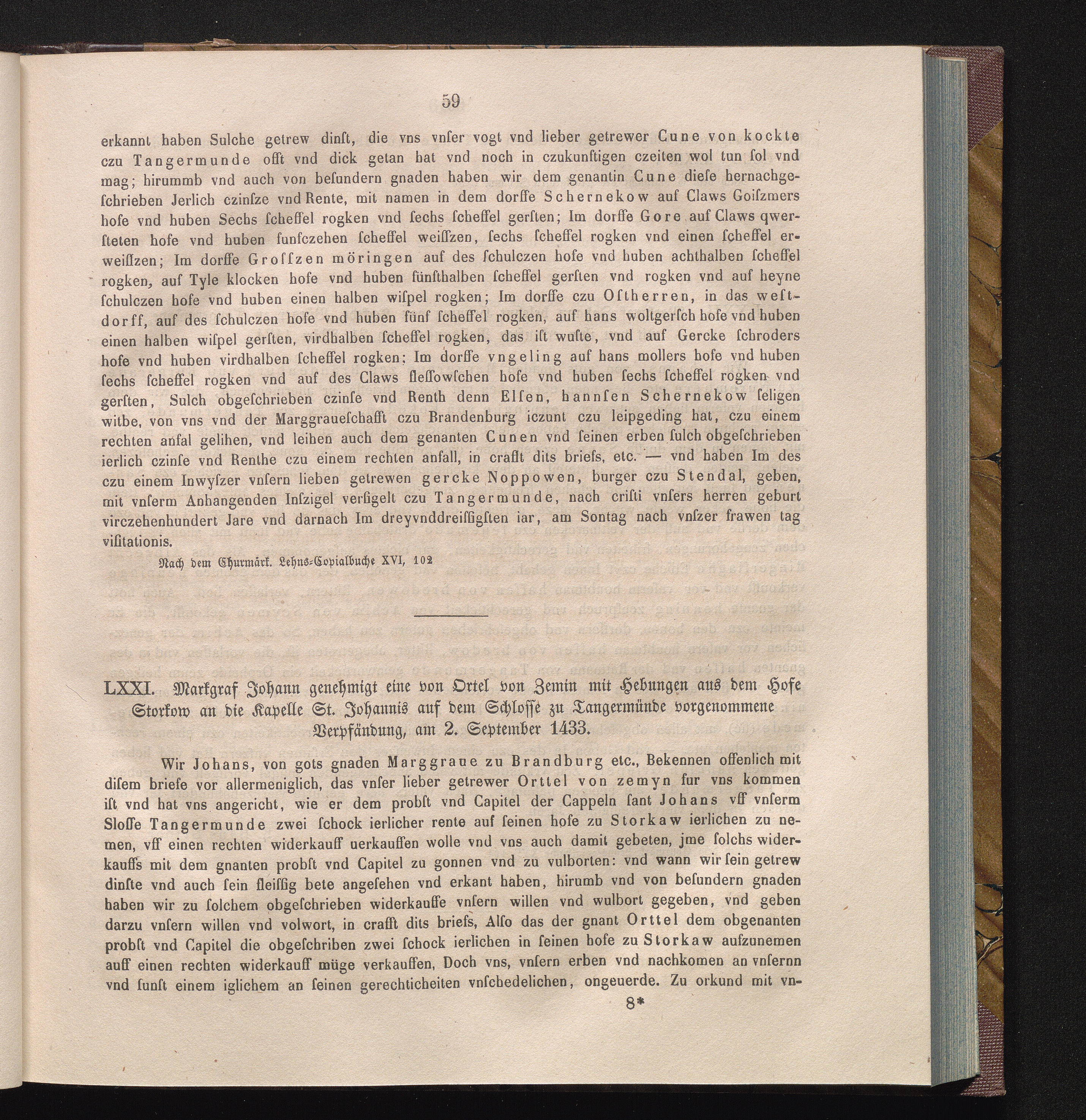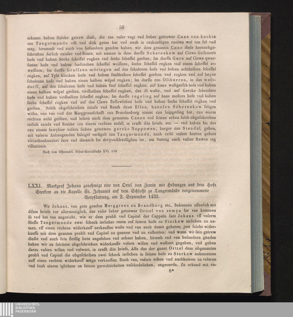 LXXI. Markgraf Johann genehmigt eine von Ortel von Zemin mit Hebungen aus dem Hofe[...]