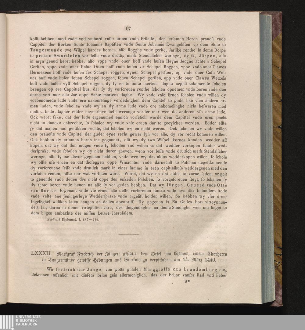LXXXII. Markgraf Friedrich der Jüngere gestattet dem Ortel von Czemyn, einem Chorherren[...]